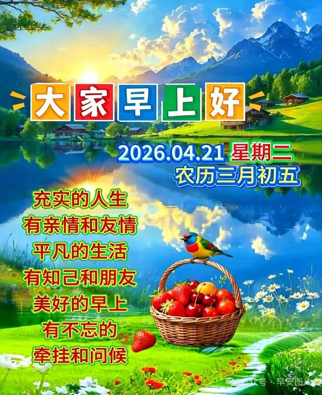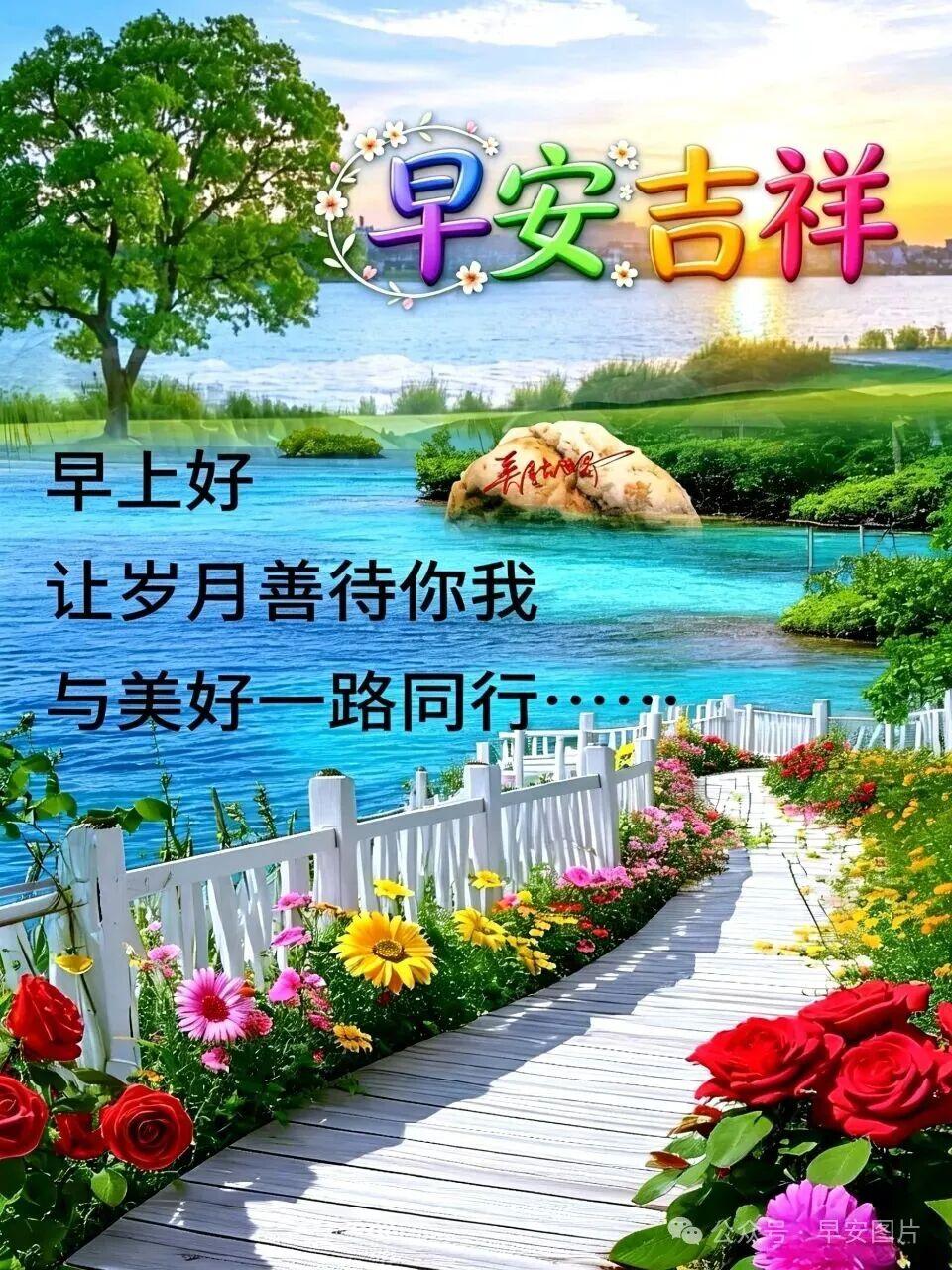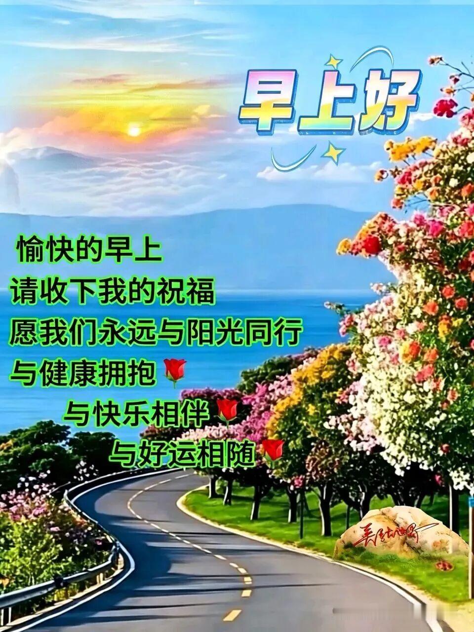 早安!💦碧水绕青山,🍃清风拂鬓边,愿您晨起有暖意☀️,岁岁皆安康🙏,平安伴一生❤️。🍒🌴🌱