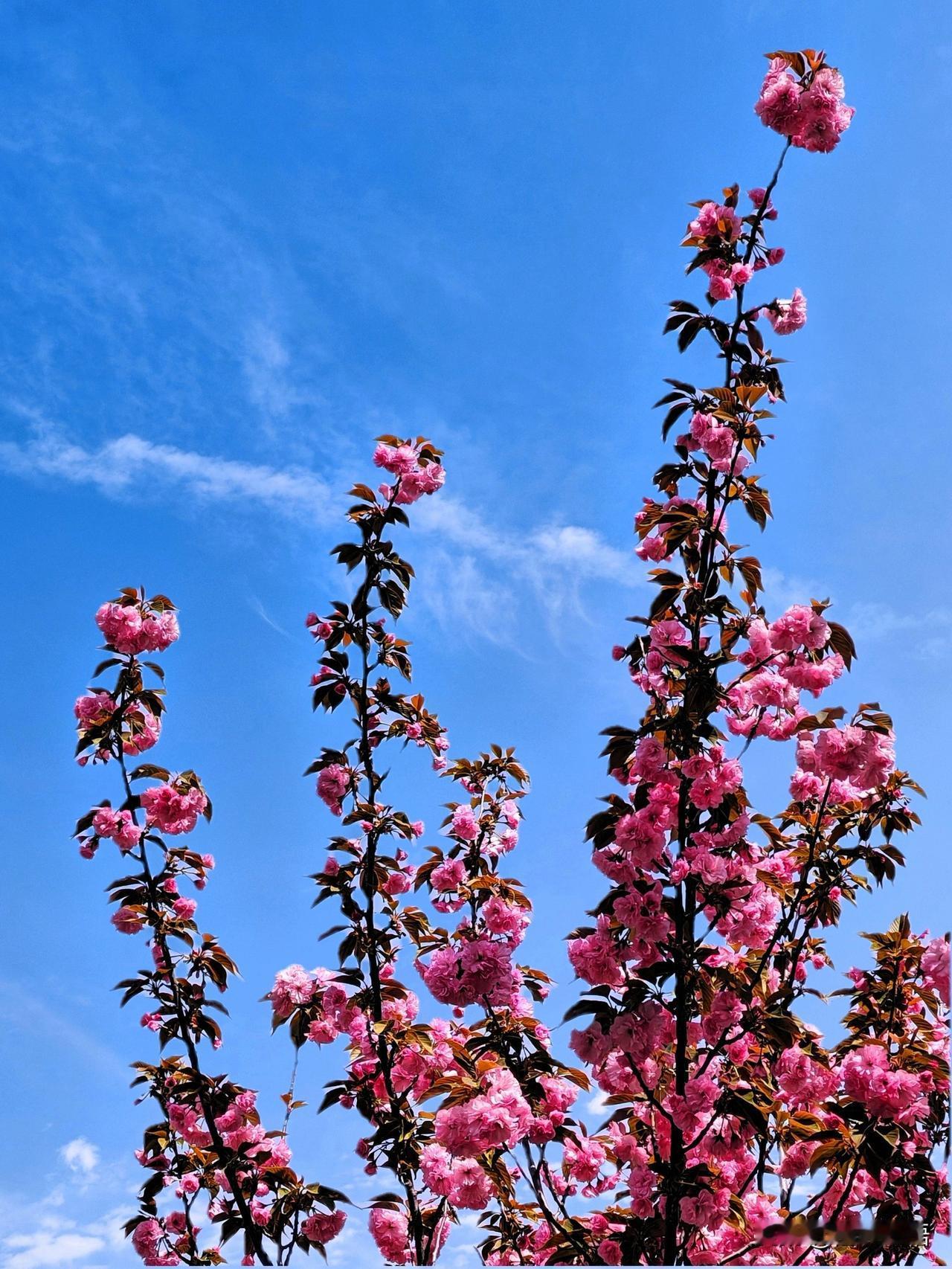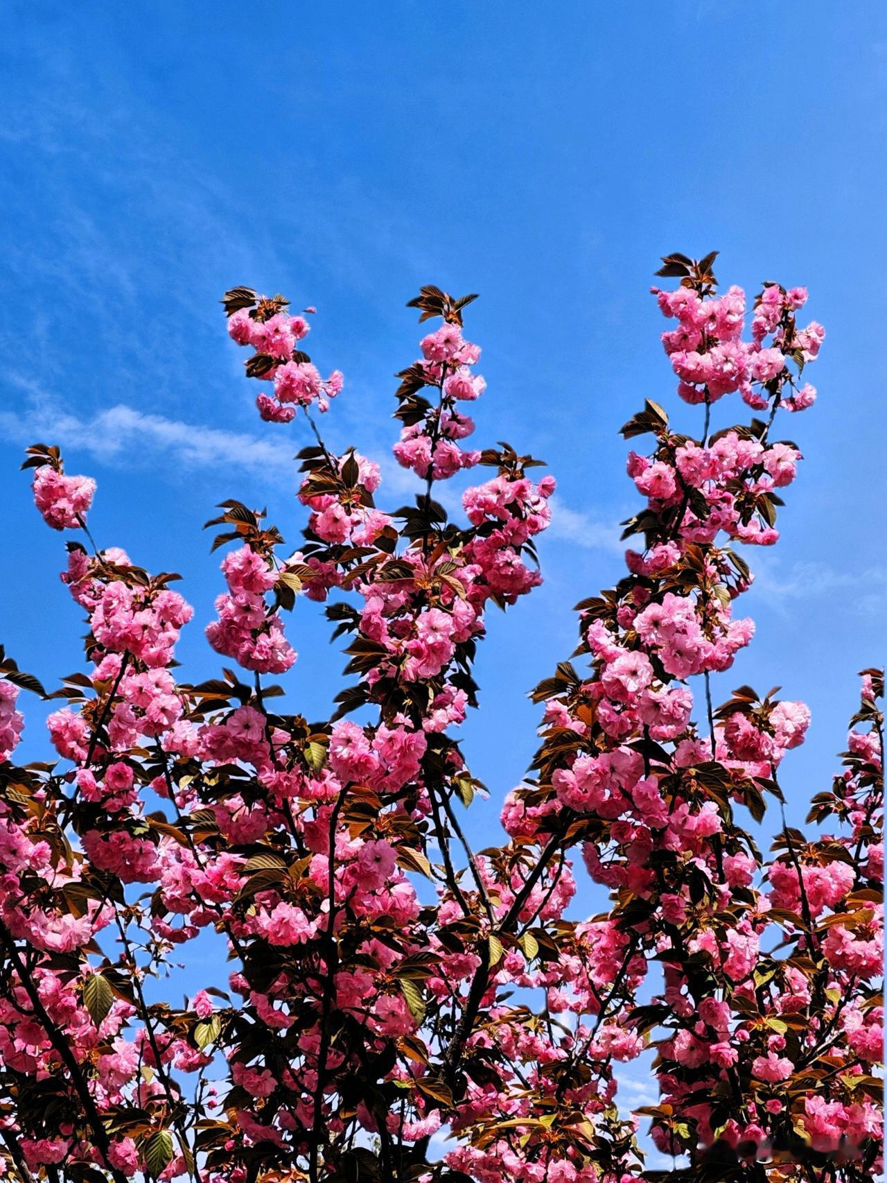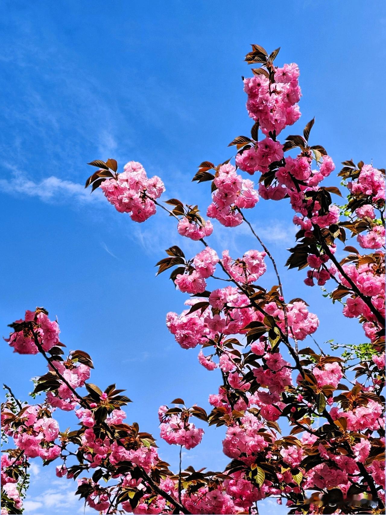 春日盛开的粉色樱花,蓝天白云映衬,美不胜收!🌸🌞