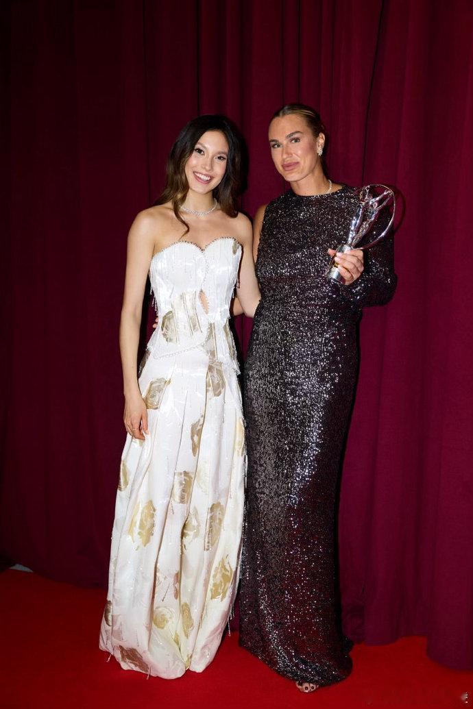 【谷爱凌晒主持活动照】谷爱凌萨巴伦卡合影 4月21日,谷爱凌晒活动照:今晚在劳伦斯世界体育奖的盛典上与德约科维奇共同担任混双主持 🌟🎾😁感谢劳伦斯将世界顶尖运动员汇聚一堂,共同庆祝体育所拥有的力量——团结人们,让世界变得更美好 🤍