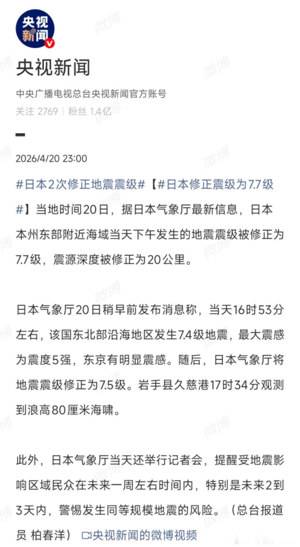 日本7.7级地震!高市早苗发出呼吁!当地时间4月20日下午3点53分,日本东