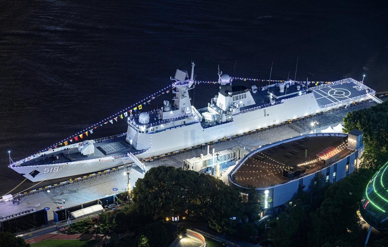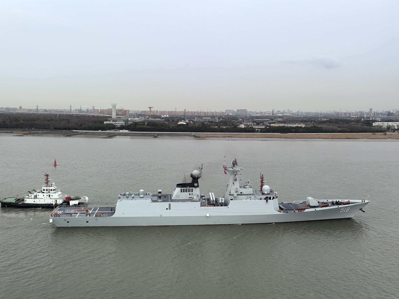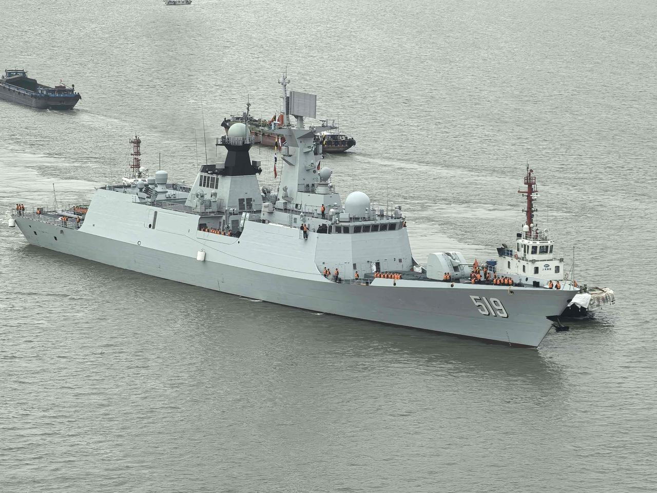 黄浦江上的054A改进型519号阜阳舰。