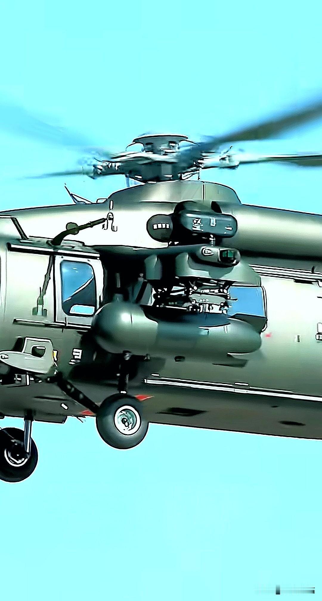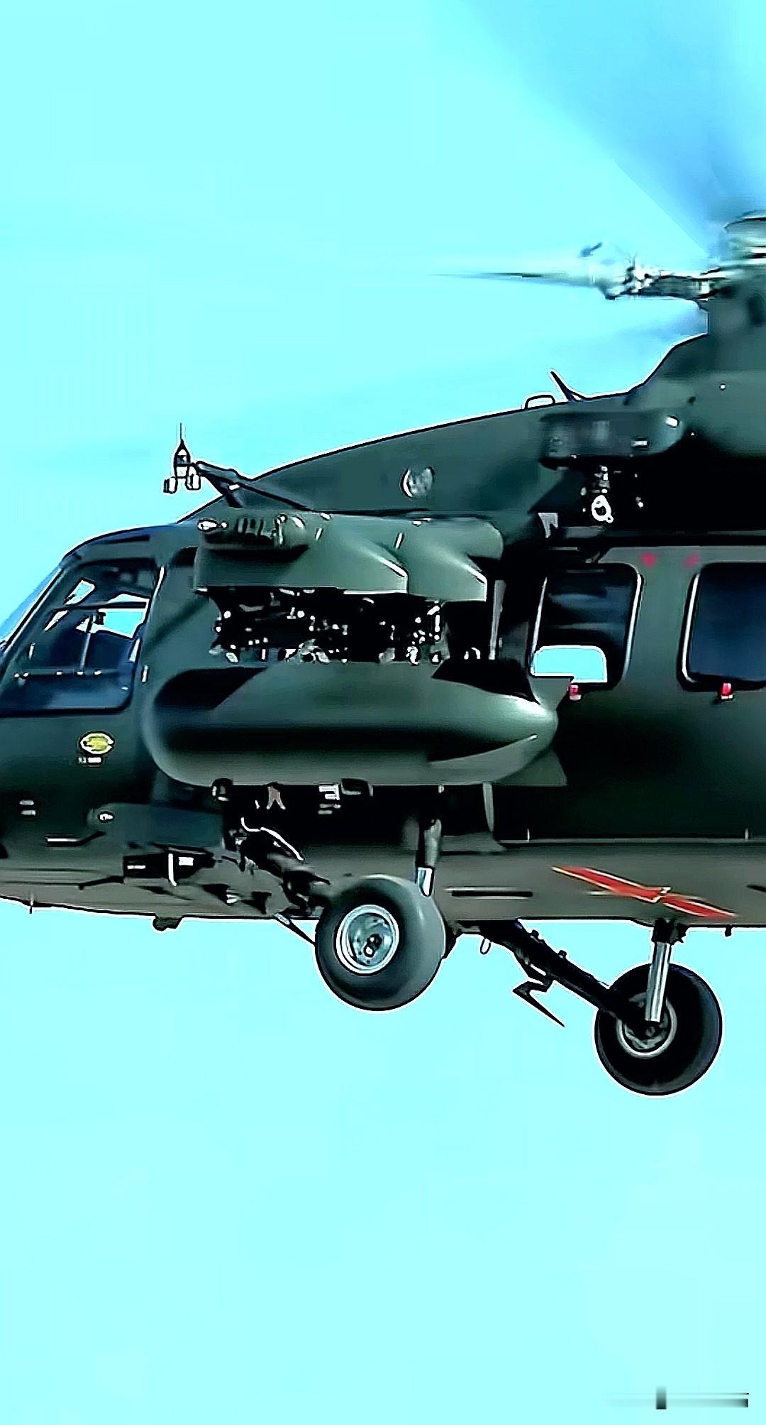 直-20T的“炸弹型”副油箱。作为直-20T远程突击、跨海作战的关键装备,副油箱主要借助机身两侧的可拆卸短翼挂载,能大幅增加航程与滞空时间。直-20T短翼下方设有4个外挂点(每侧2个),可灵活挂载副油箱和对空、对地武器,执行对地突击任务时,通常搭配2具副油箱、AKD-10反坦克导弹以及火箭巢。