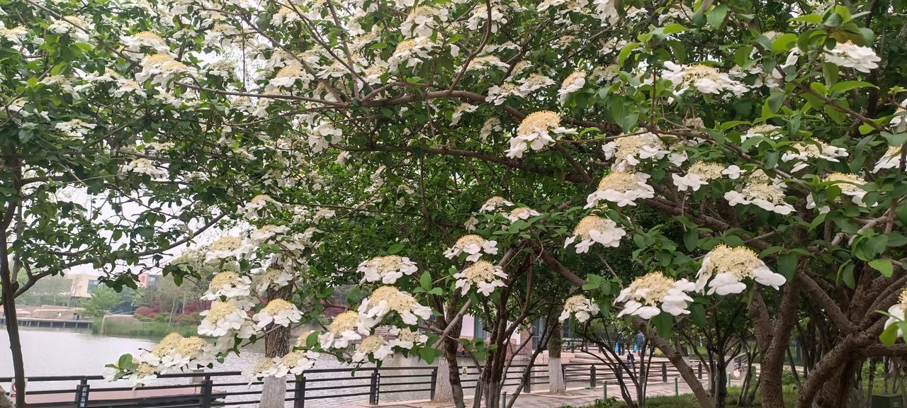 前几天去青枫公园观赏中华木绣球,看到一旁多株琼花开得极为繁盛。一时好奇,豆包上查一查木绣球与琼花的差异,不料答案让我大吃一惊——中华木绣球才是隋炀帝下江南看的琼花,而我一直以为的琼花,是宋朝以后才培育的,且正式定名为琼花,也称“聚八仙”。真是学无止境。
