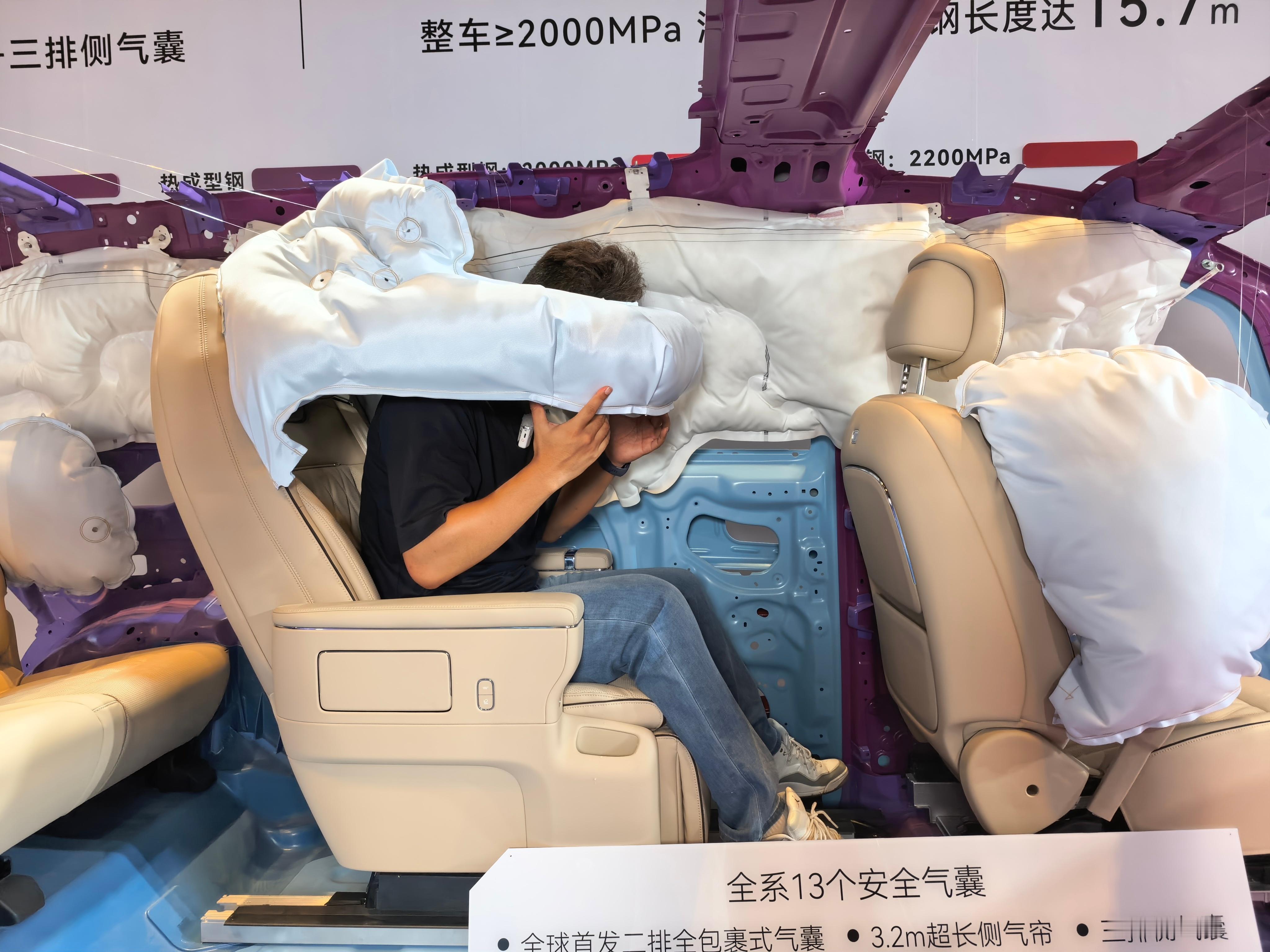 以前大家都在卷气囊数量,殊不知在某些特定的情况下,气囊还是有安全死角的,除非你铺满整个座舱。智界 V9 这次推出了二排的全维包裹安全气囊,让 MPV 车内安全再升级。