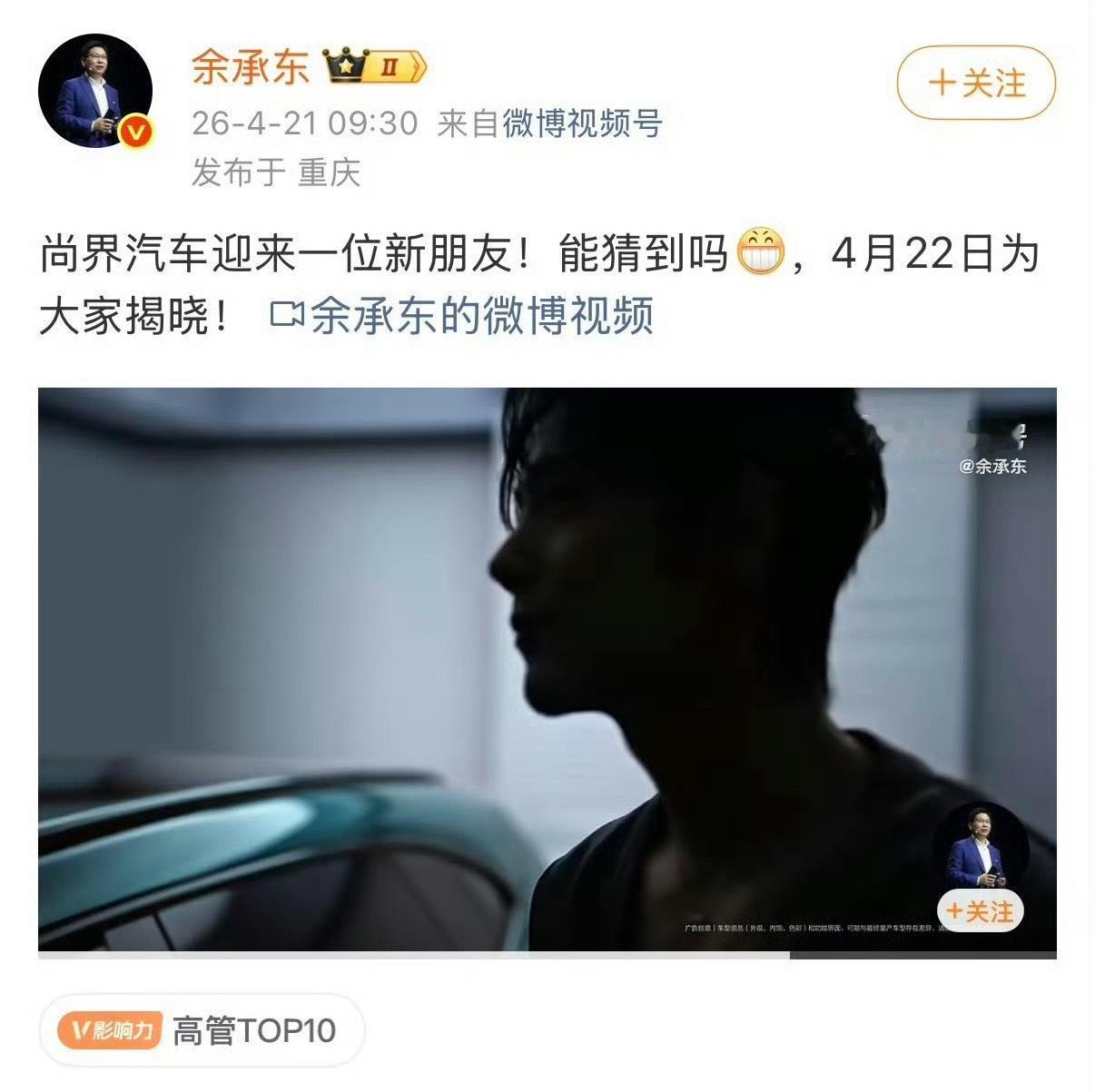 肖战即将官宣华为鸿蒙智行与上汽集团合作的中高端新能源品牌尚界(Stelato)代