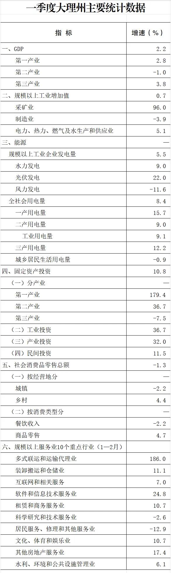 一季度,大理州GDP增长2.2%,各行业表现参差不齐。