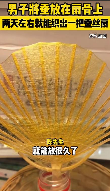 惊呆了!有个福建漳州的小伙子,脑洞真是太大了,抓了几只蚕宝宝放到扇骨上,想让蚕自己吐丝,硬生生织出一把纯天然的蚕丝扇。