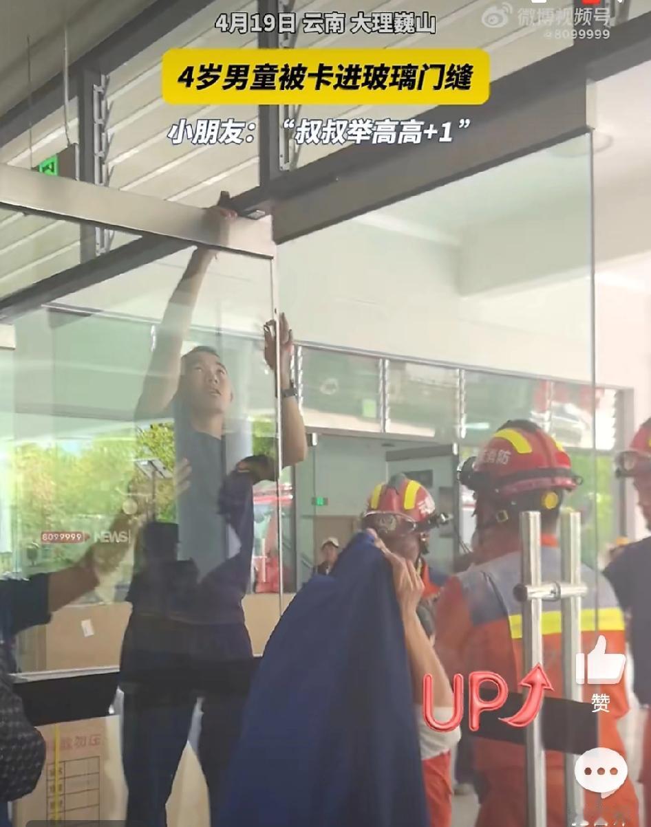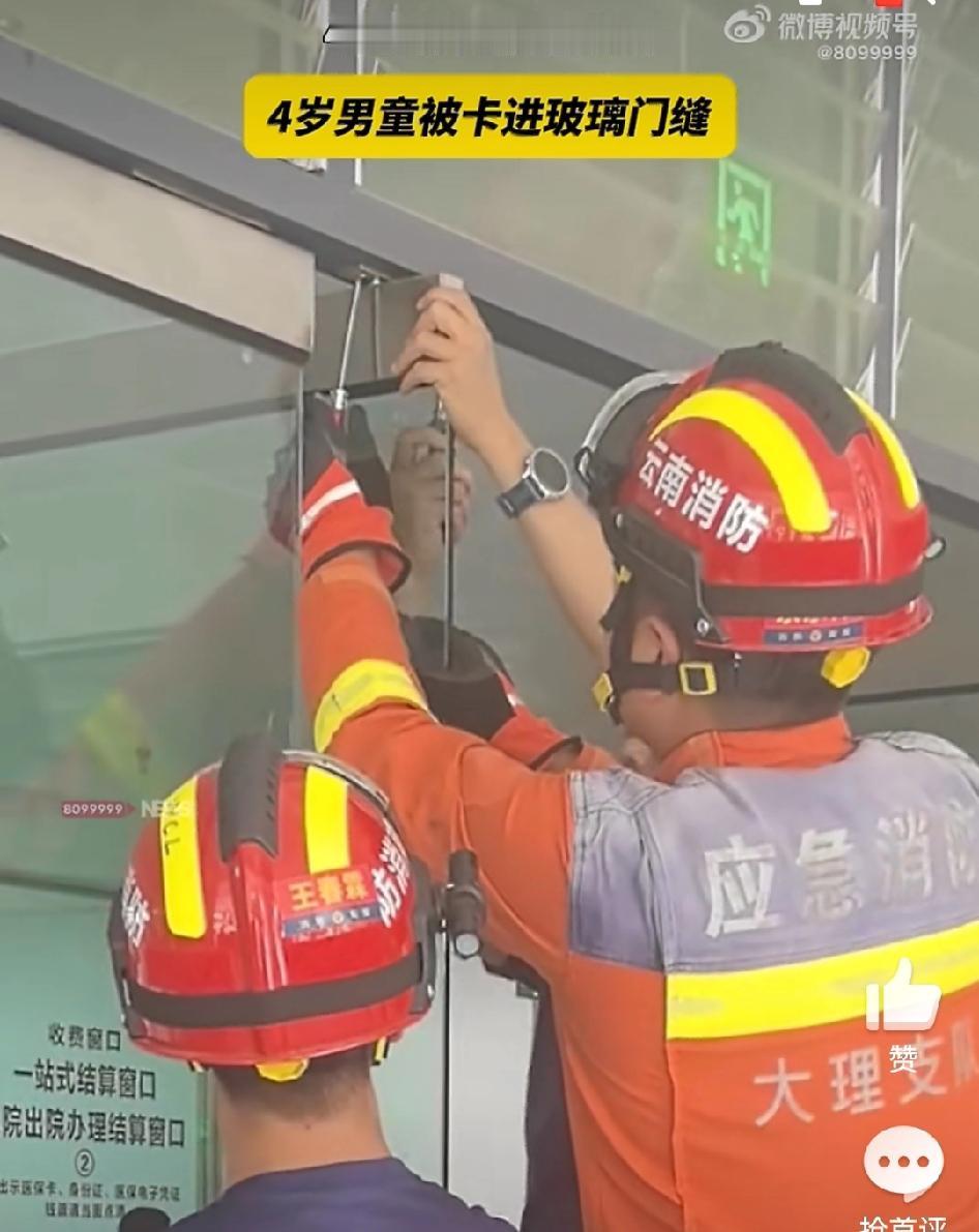 【大理4岁男童被卡玻璃门缝获救】