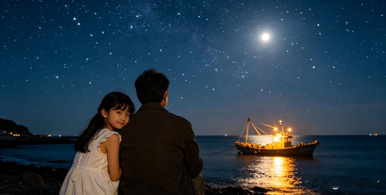 最让我难忘的,是夜晚的海边。没有了白天的喧嚣,大海变得格外静谧。抬头望去,满天的繁星闪烁,与海面上的点点渔火交相辉映,分不清哪里是天空,哪里是海面。晚风轻轻吹拂,带着海水的清凉,耳边是海浪舒缓的节拍,我依偎在家人身边,感受着这份难得的宁静与温馨,心里满是踏实与幸福。