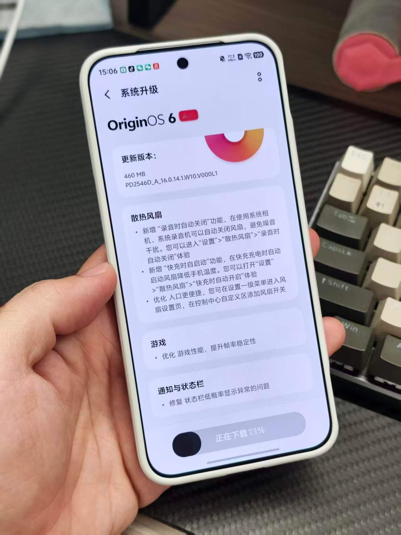 听说iQOO15 Ultra推送了新的版本,优化了风扇的调控,果断更新