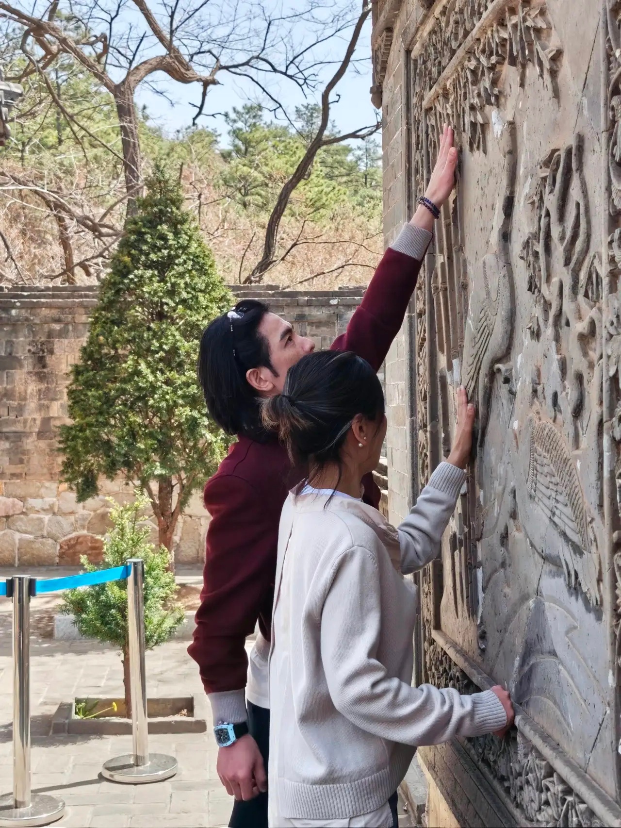 萧敬腾和老婆林有慧现身辽宁大孤山祈福,夫妻俩全程都好甜蜜,牵着手走路,互相看对方
