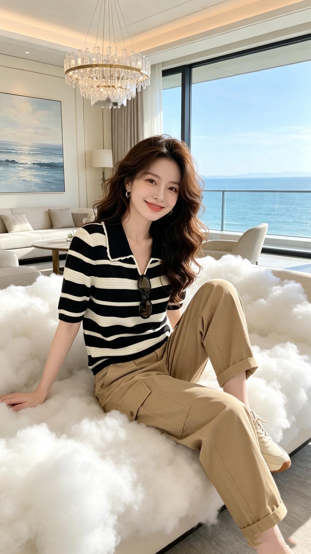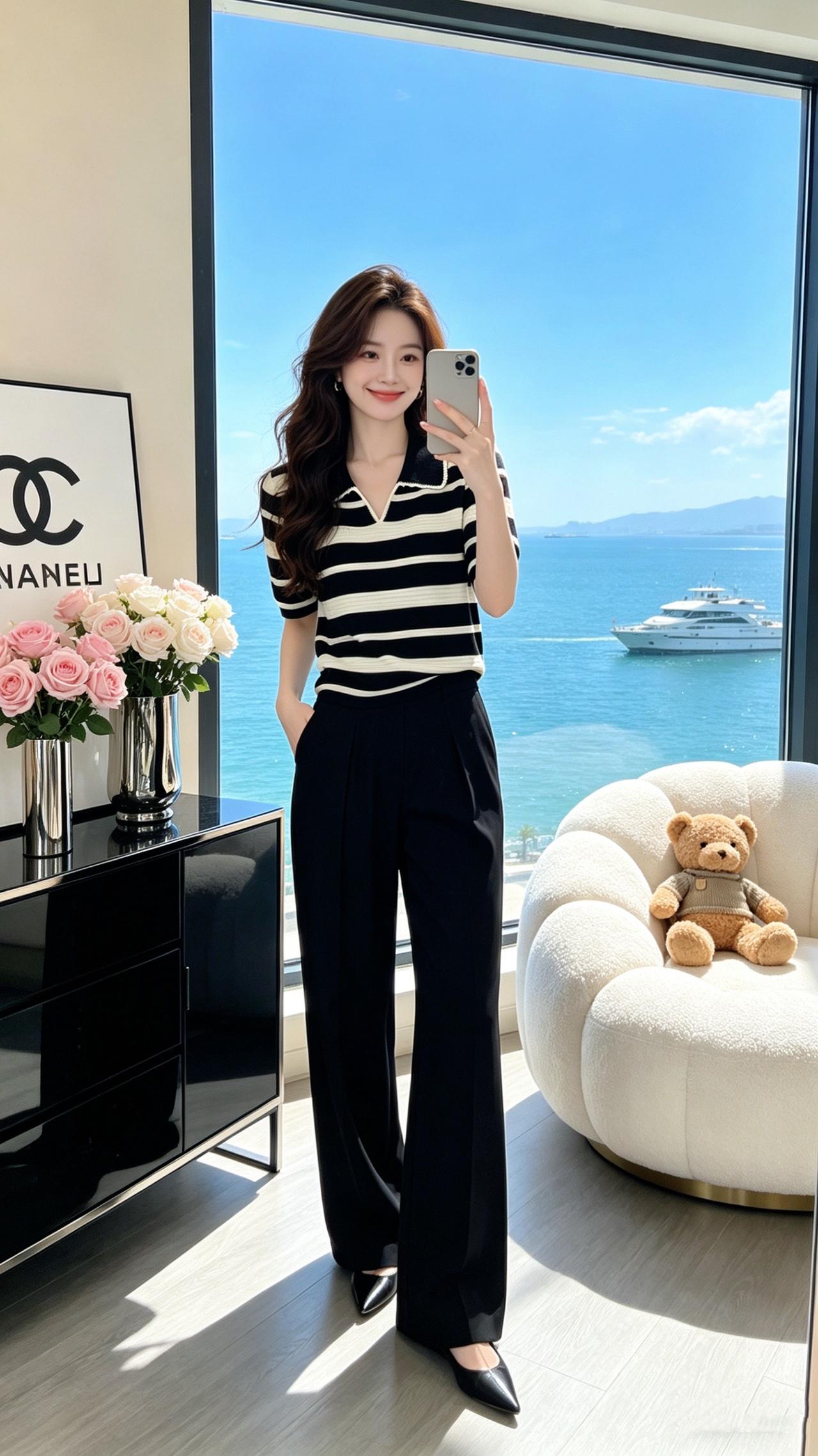 回头率超高的时髦老钱风!这组大地色系穿搭太绝了,浅咖针织Polo衫搭配藏青阔腿