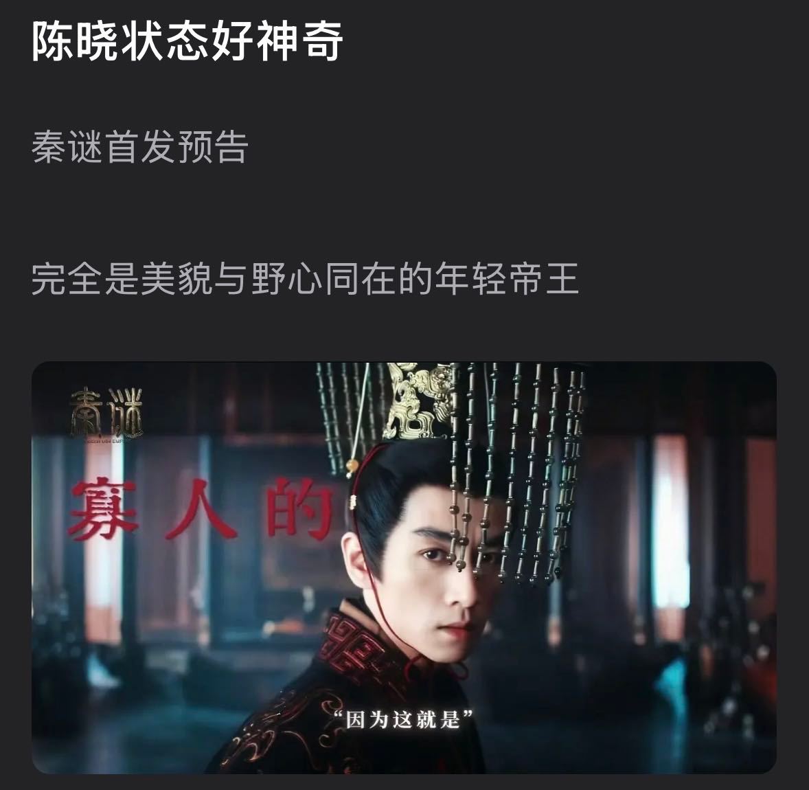 陈晓 天选古人就是如此权威五官立体,骨相帅,气质绝佳,关键是演技还要很🐮!怪不得秦谜预告一出,大家都是一整个期待住了哇。我将永远拥护这个颜值与演技双双在线的陈晓!