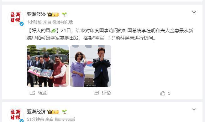 4月21日,李在明和夫人已经结束了印度访问,下一站他们要去越南访问了!