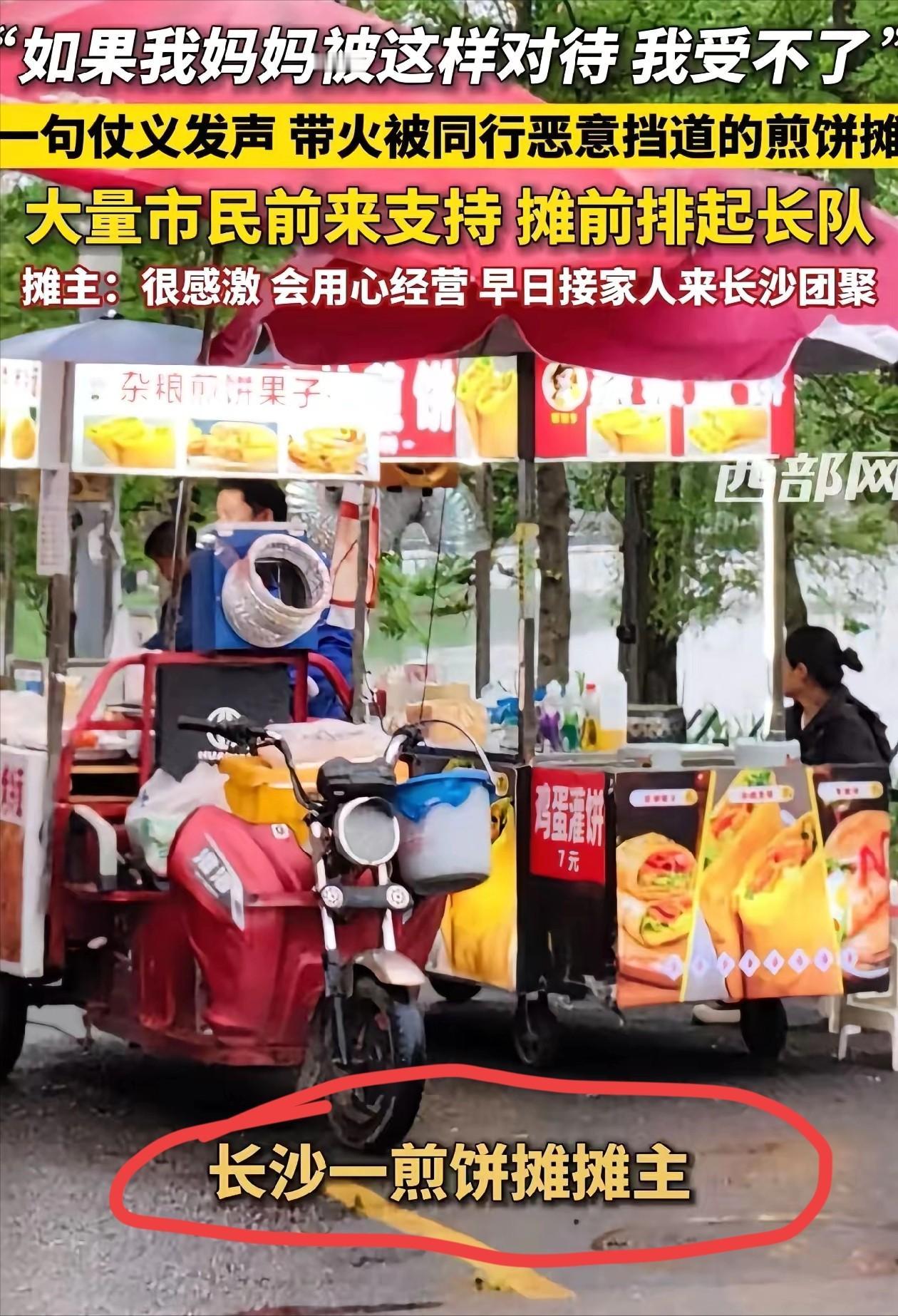 参考信息:煎饼摊被恶意竞争阻挡,好心网友发声“如果我妈妈被这样对待,受不了”,意外带火摊位2026-04-1818:25·潇湘晨报·晨视频