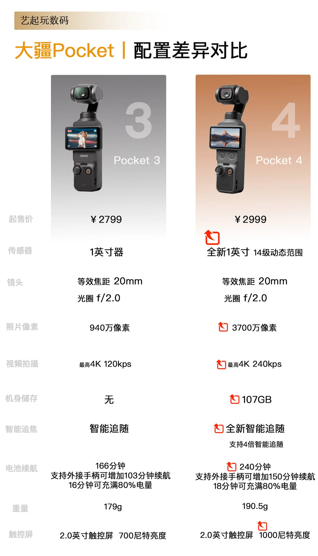 ⬆️传感器升级。和前代相比都是1英文,但动态范围更好,以为夜景拍摄会有进步。