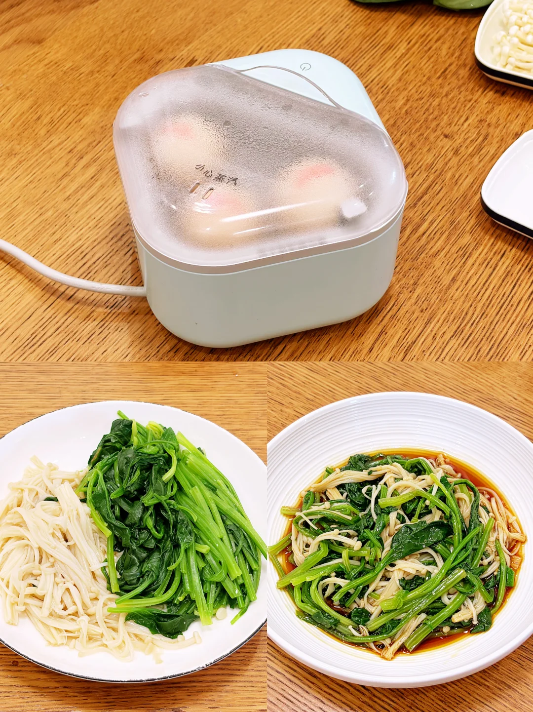 金针菇、菠菜焯水放凉