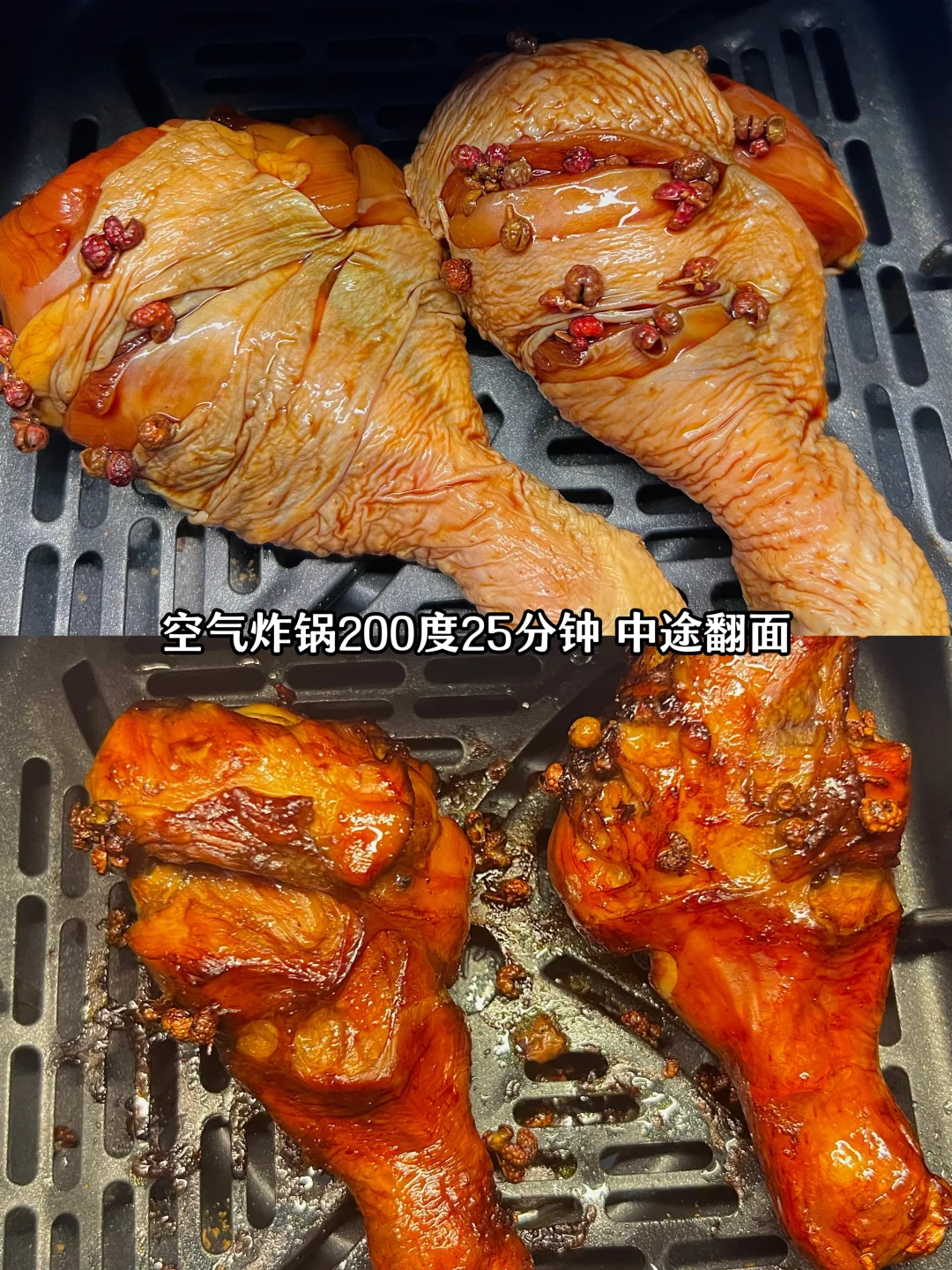 今天尝试了超简单的花椒鸡腿,真的好香,鸡腿提前用花椒、酱油腌一下,空气炸锅或者烤箱一烤,外皮焦香里面超嫩,懒人福音。