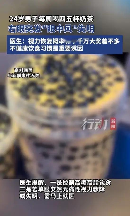 “悲剧还是发生了!”福建福州,一24岁男子没有基础病,但就是喜欢喝奶茶,每周都要喝四五杯,结果某天,右眼突然看不见,他赶紧冲进医院检查,被确诊为“眼中风”,要是延误黄金救治时间,可能会永久失明!网友:爱喝奶茶的我哭了!