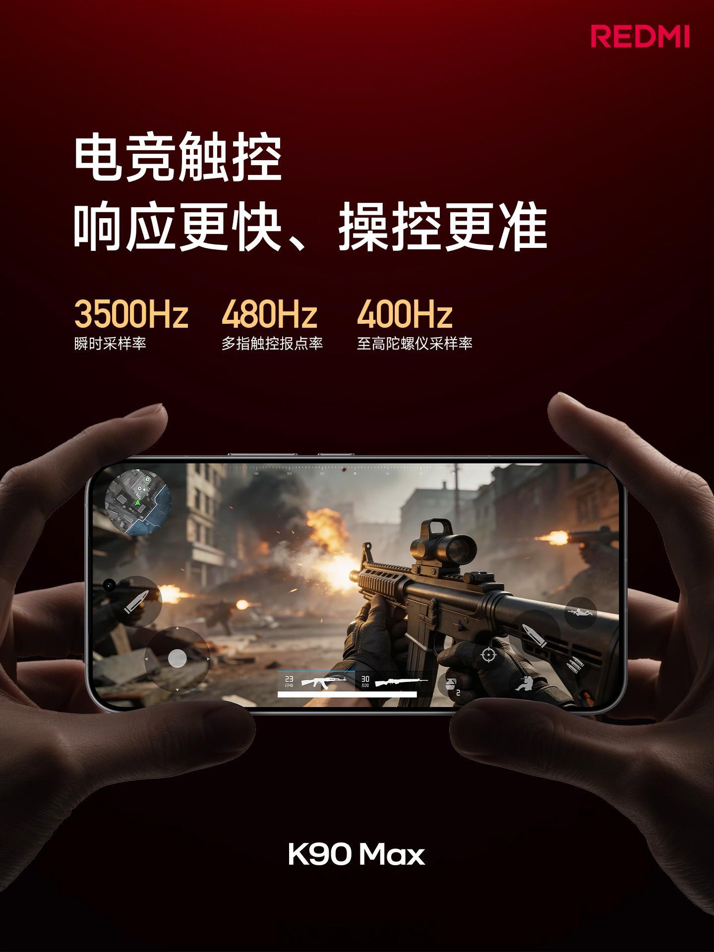K90 Max 搭载 165Hz 高刷电竞屏165Hz 帧原生适配,超40款游戏,不是插帧搭配独显芯片D2超百款主流游戏「超分 + 超帧」满血并发触控和陀螺仪提升,响应更加快