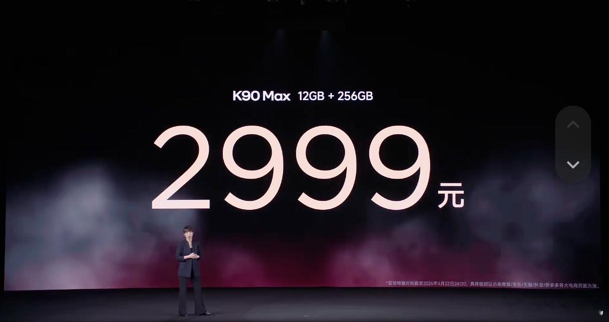 红米K90Max发布会REDMI K90 Max天玑9500旗舰芯、主动风冷散热、165Hz电竞屏全拉满,12+256首销仅2999,叠加国补低至2549.15,顶配16+1TB也才4699,首销福利截止4月22日。