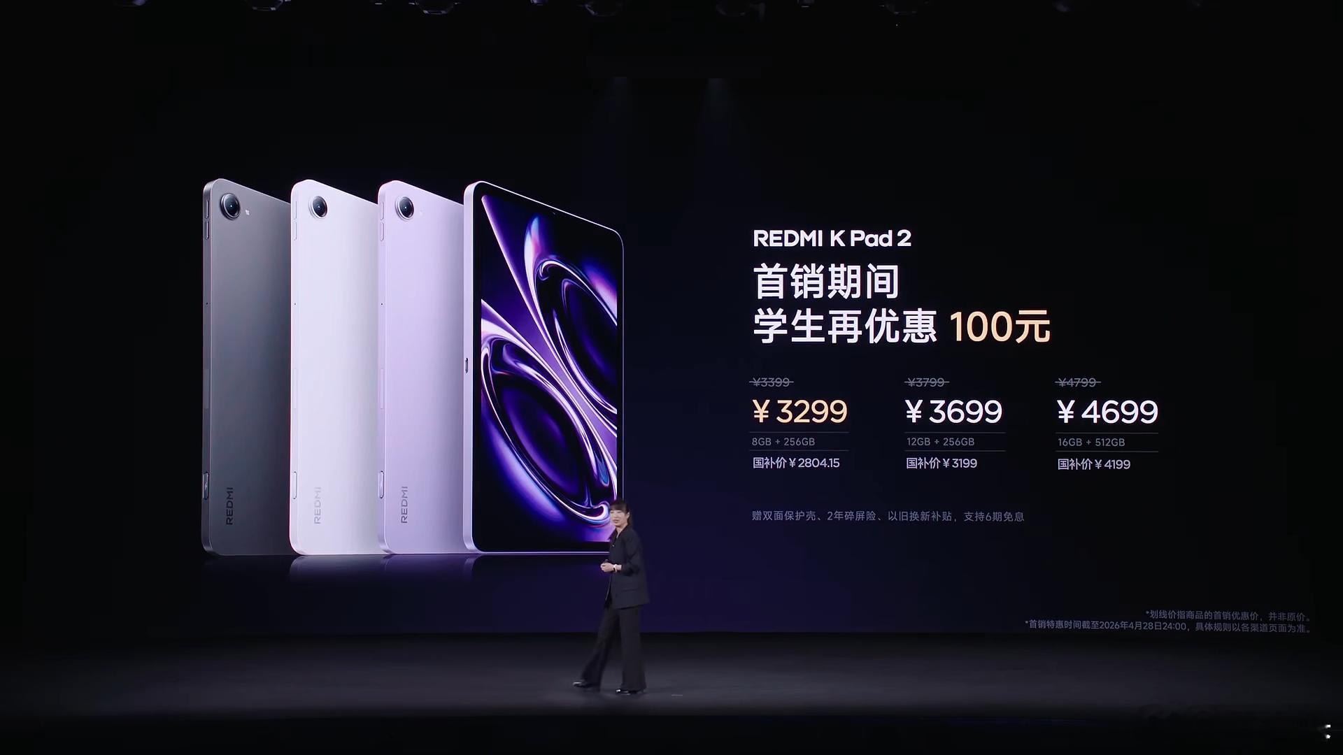 REDMI K Pad2 8GB+256GB ¥3399 国补价¥289912GB±256GB ¥3799 国补价¥329916GB + 512GB ¥4799 国补价¥4299首销期凭学生证再优惠100元红米K90Max发布会K90Max价格