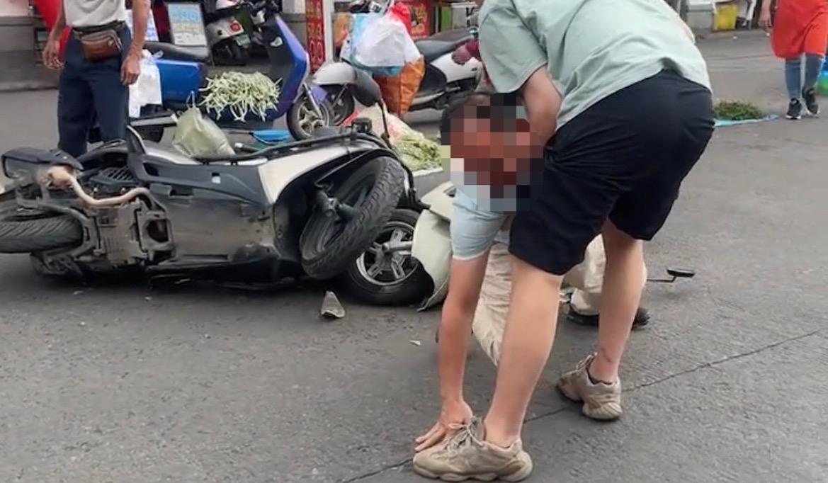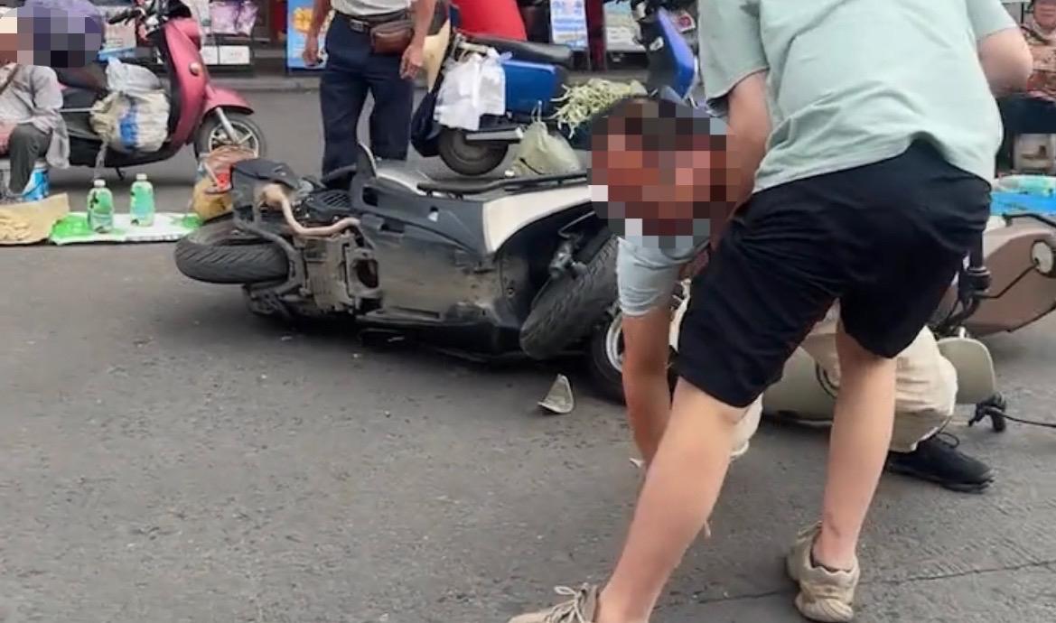 4月21日,玉林市城区大南路到江滨路路段两辆电动车发生相撞。有一名男子被人扶了起来!是不是有一辆车逆行了?
