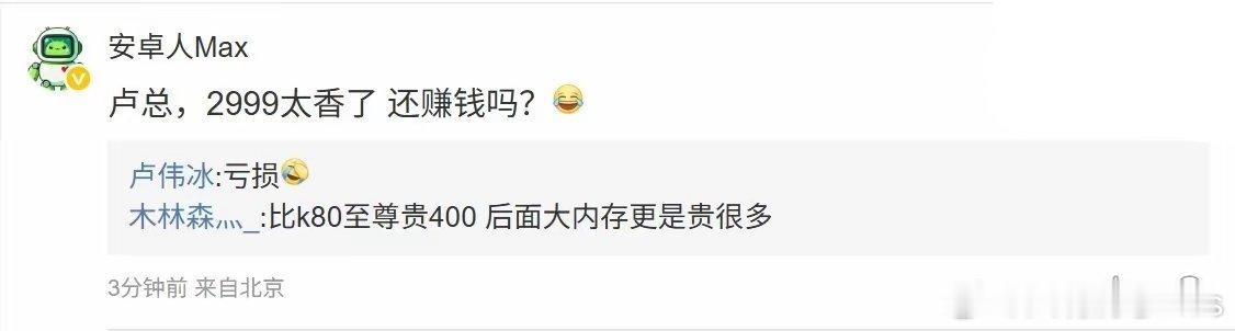 卢伟冰回应小米REDMI K90 Max是否赚钱:亏损