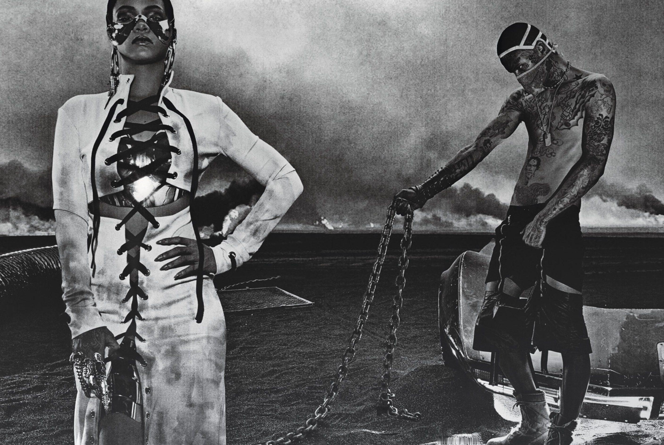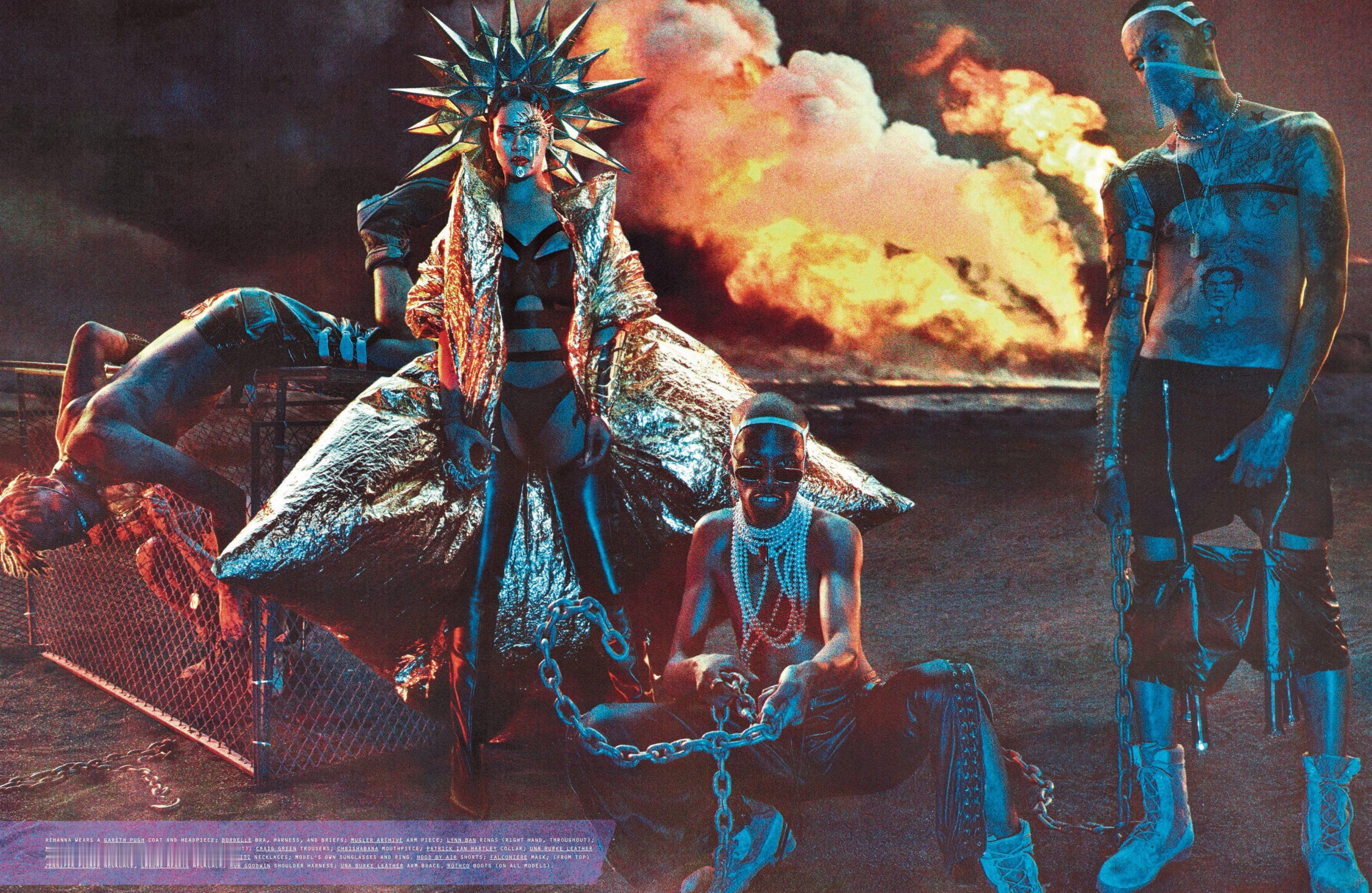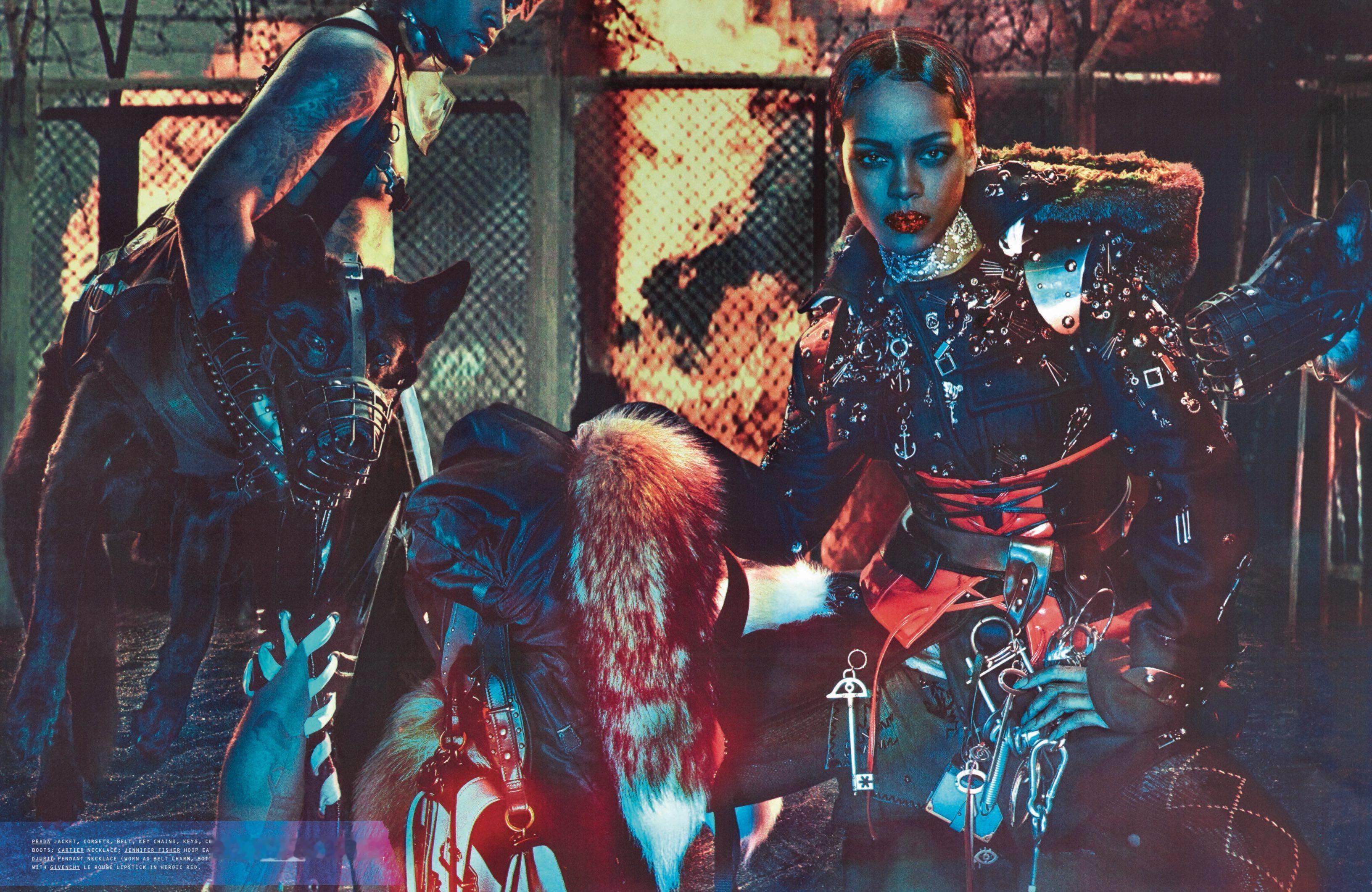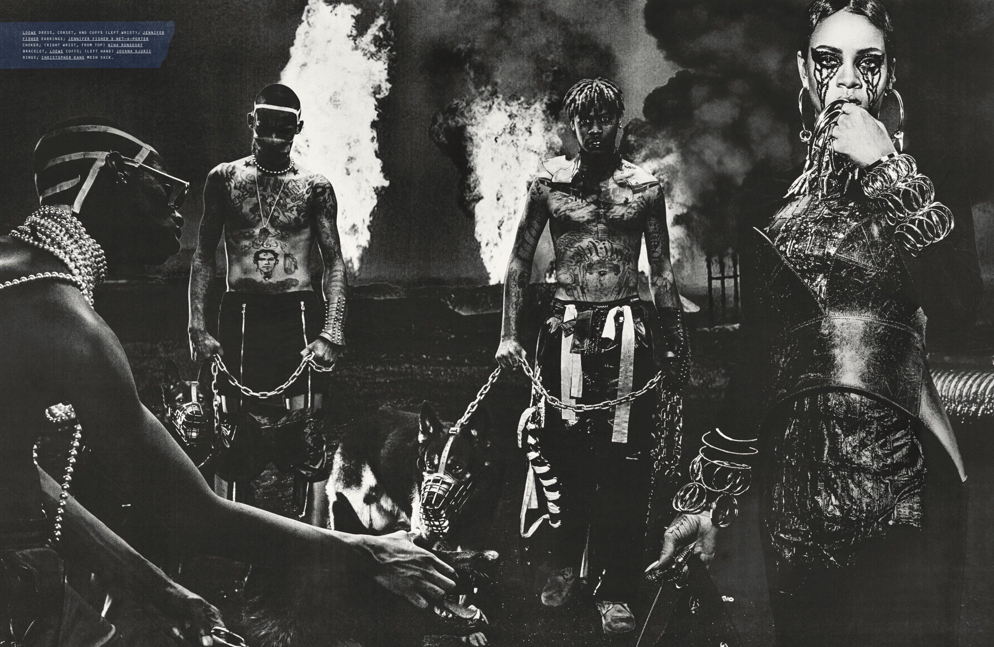 回顾一下十年以前 Rihanna 与 W Magazine 的这组金九刊合作 ,化身末日女王的 Rihanna 在燎原的废墟之中登场 ,金属链条缠绕权力 ,铆钉与皮革淬炼成铠甲 ,裙摆扫过铁丝网与焦土 ,身后是臣服的信徒与咆哮的猎犬 … 暗黑又极具张力的创作 ,可以说是相当经典的一组大片 !