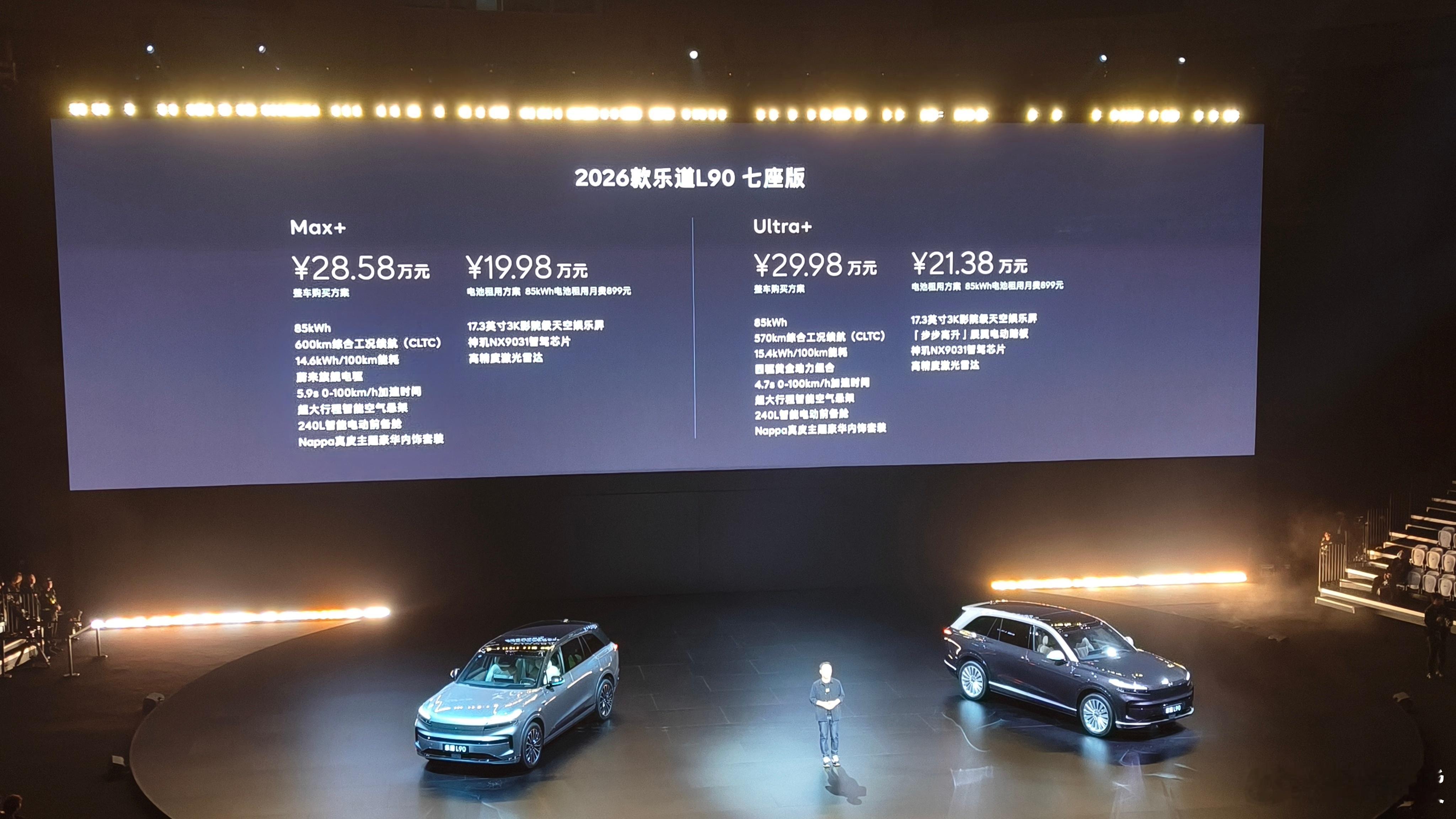 六座版:✅ Pro版:整车26.58万元 / 电池租用17.98万元✅ Max+版:整车27.98万元 / 电池租用19.38万元✅ Ultra+版:整车29.98万元 / 电池租用21.38万元七座版✅ Max+版:整车28.58万元 / 电池租用19.98万元✅ Ultra+版:整车29.98万元 / 电池租用21.38万元