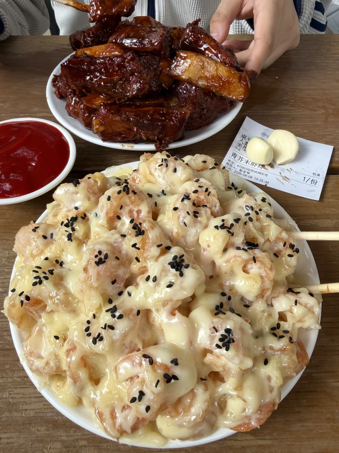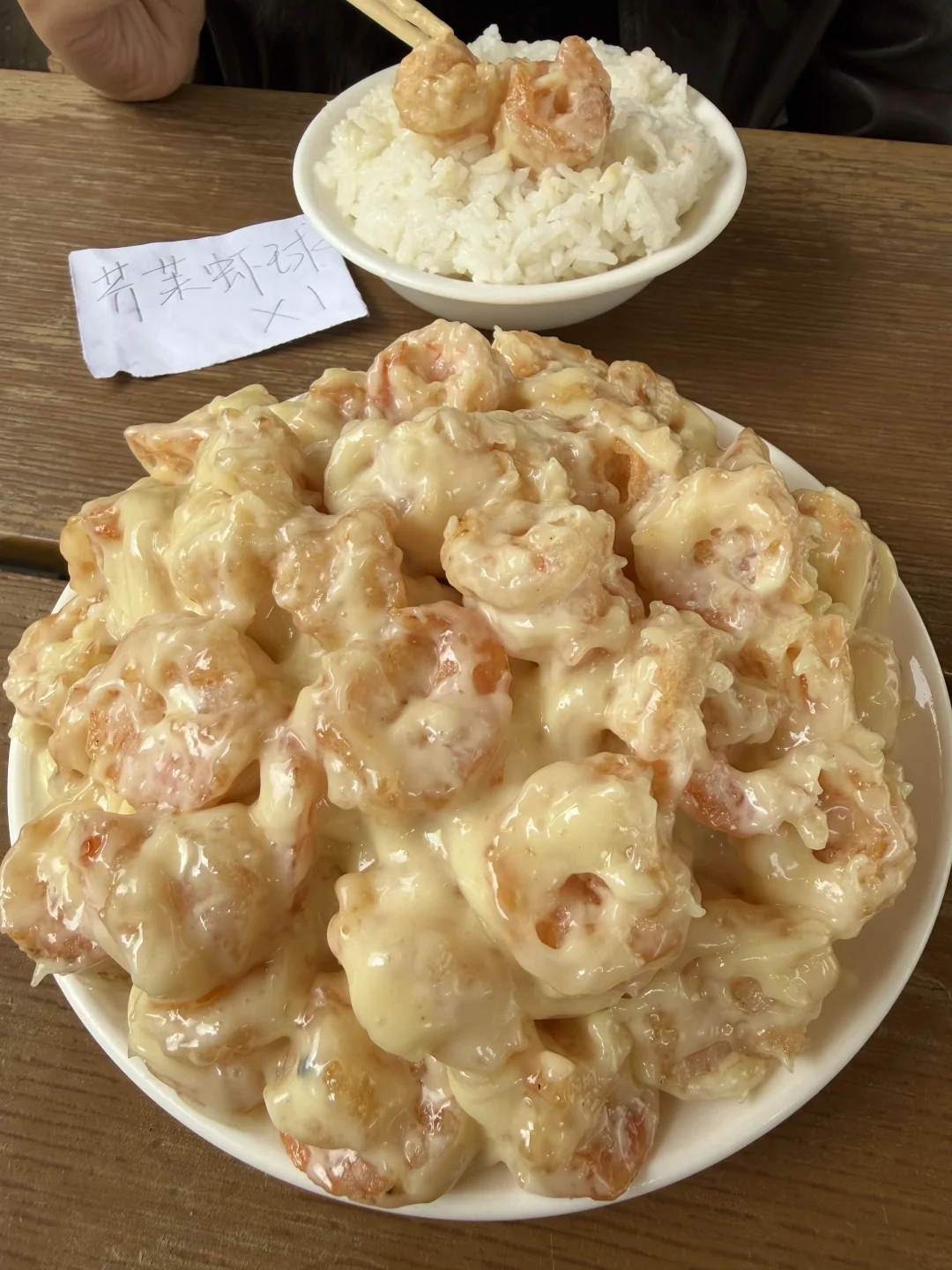 芥末虾球也记得吃!店里用料很实在,能吃得出来!