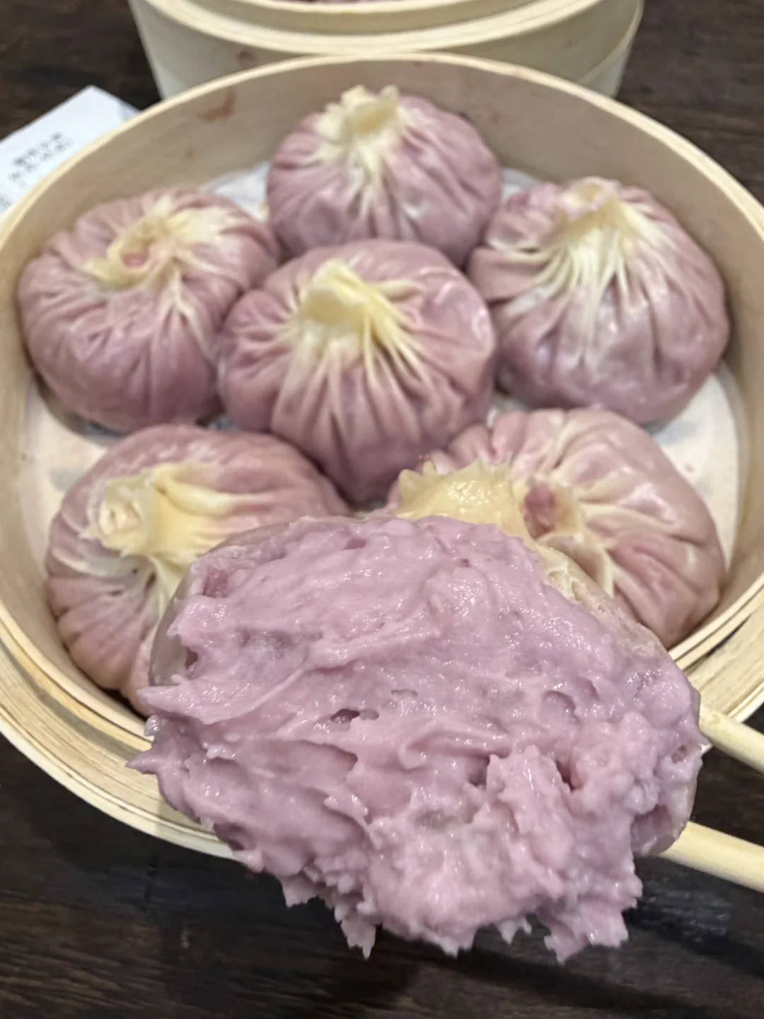 芋泥小笼包,用的荔浦芋泥,现点现做的,一点也不甜,芋香十足