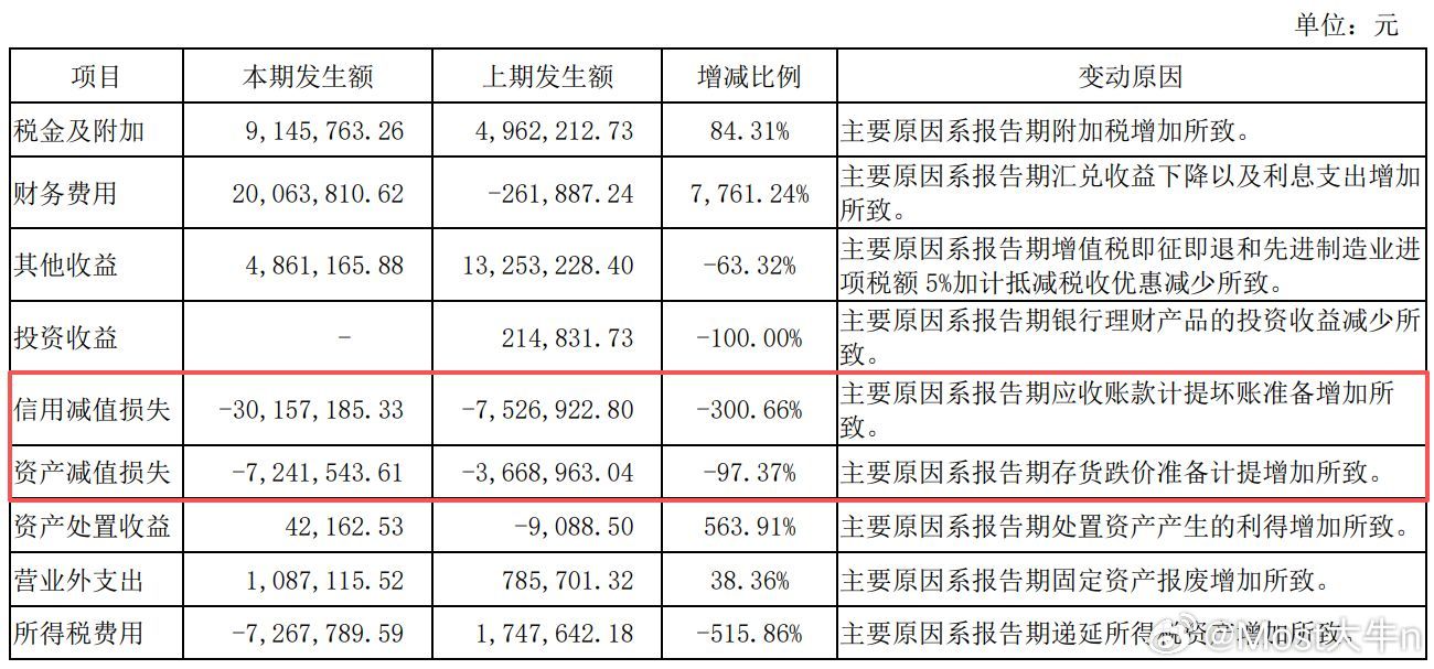 财务费用、信用减值损失等大幅增加