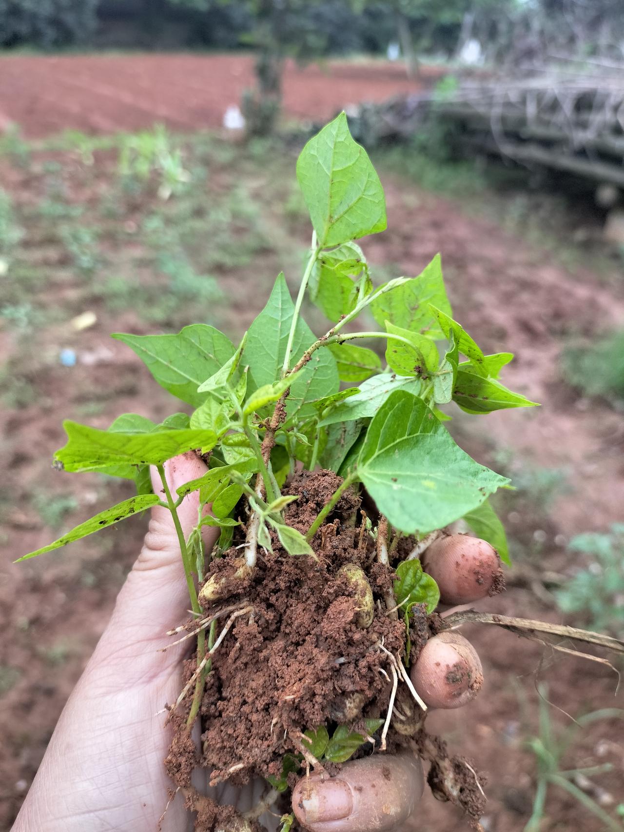 这是房东地里的剥皮番薯秧,他种了一大片,然后他拿了一些秧苗给我种,如果种的好,我就不用买了,每个省份的叫法一样,我们江西省叫剥皮番薯,也叫凉薯,可以生吃也可以炒菜吃,特别甜。