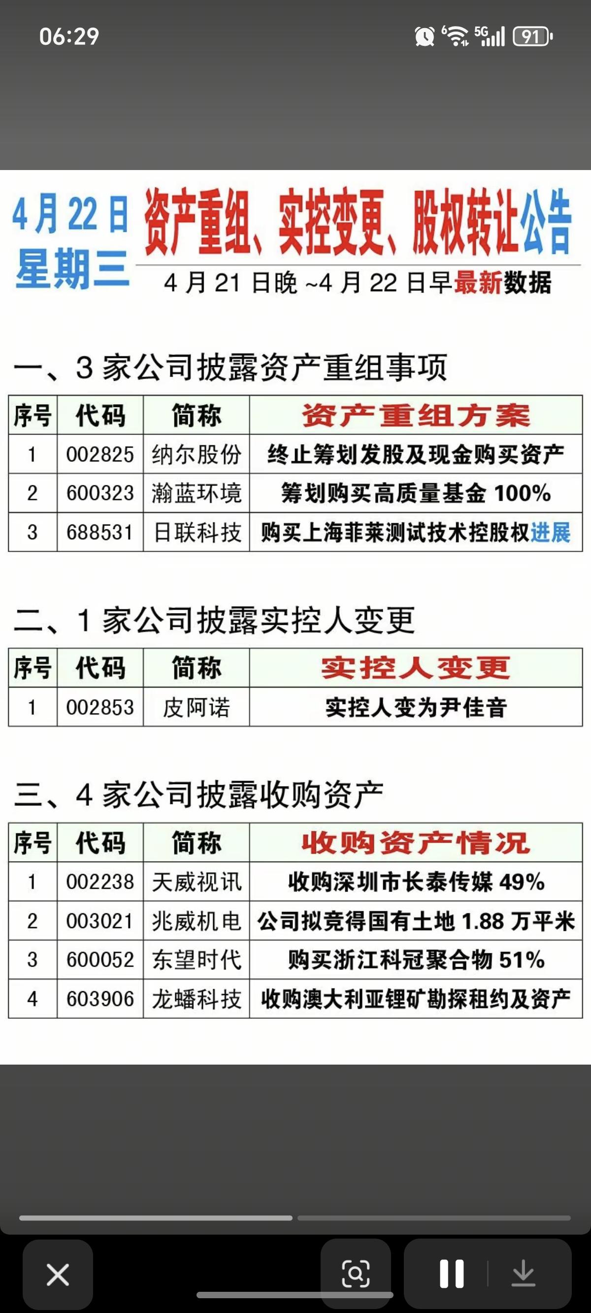 4.22周三 上市公司公告 汇总! 主要涉及: 资产重组、增持计划、减持计划