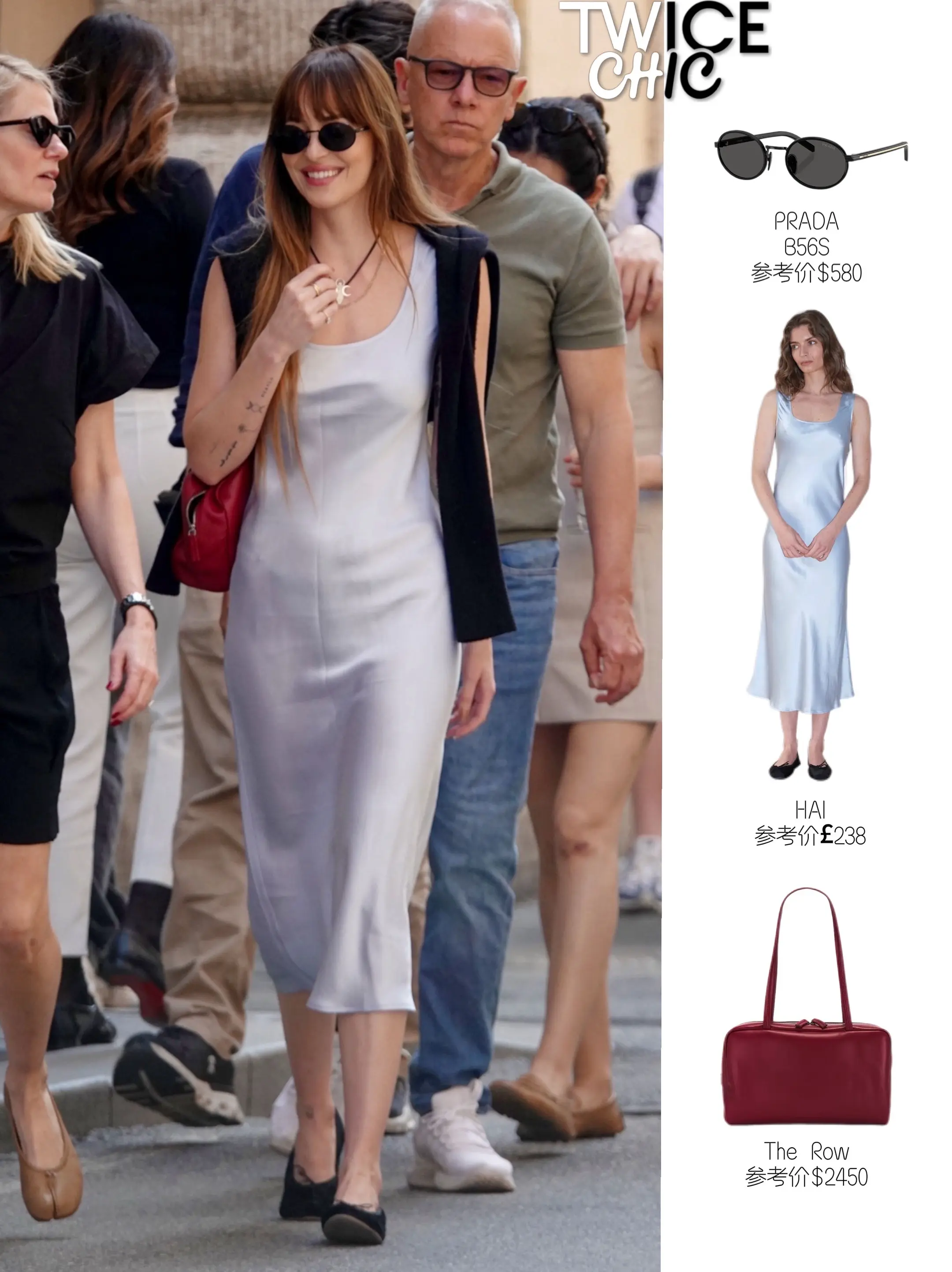 冰蓝与红,夏日清凉穿搭的正确打开方式。Dakota Johnson今日...