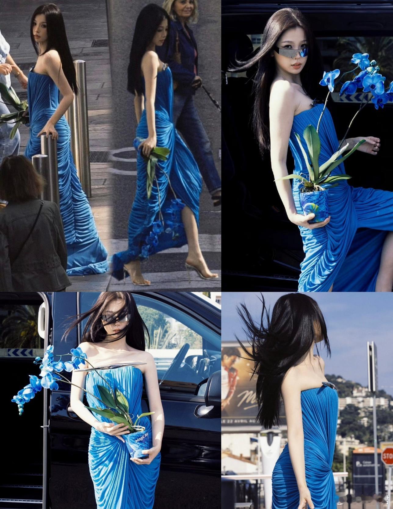 虞书欣戛纳蓝色妖姬造型与金色礼服造型,两套衣服都好美啊,生图状态满分!肤白貌美真的没有hold不住的色彩!这身材这皮肤这身高好权威啊!虞书欣戛纳蓝色妖姬造型
