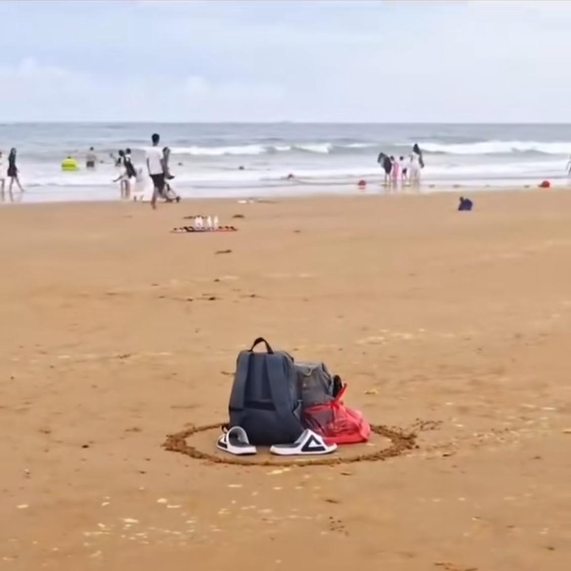 外国人表示不理解,为什么在中国的沙滩上画个圈就可以防盗,画个圈就可以去海里自由地玩耍了,背包物品没人拿也不会丢!