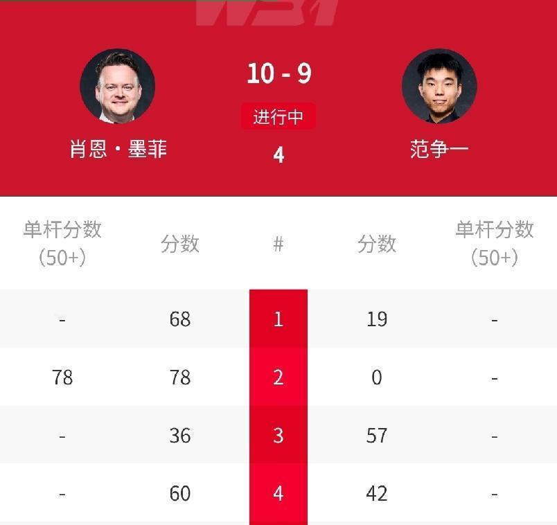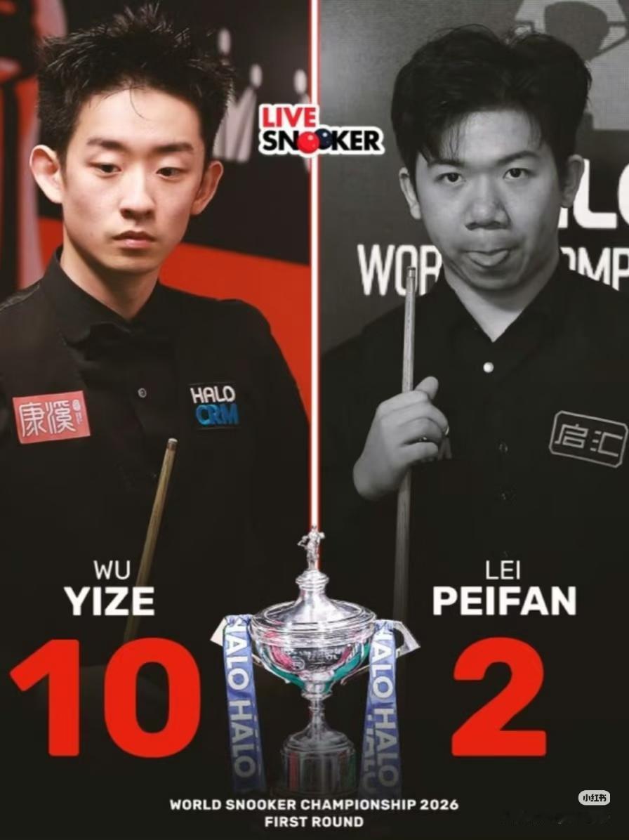 世锦赛战报:10-2、10-9、2-7,中国名将吴宜泽强势晋级,范争一惜败,国强差距大,世界第一特鲁姆普逆转晋级!北京时间4月22日消息,刚刚结束的2026年斯诺克世锦赛第一轮第四个比赛日,中国斯诺克军团有喜有优。新科国锦赛冠军吴宜泽在与雷佩凡的德比战中,以10-2轻松获胜晋级16强,他在第一阶段以8-1领先。而欧洲大师赛冠军范争一在与世锦赛冠军“魔术师”肖恩墨菲的第二阶段,打出了非常霸气的表现,在一直4-5落后,第二阶段被对手以9-8拿到赛点的情况下,他展开顽强反击,最终挽救赛点追成9-9。可惜在决胜局错失机会,9-10惜败。这个比赛日的其他几场比赛结果为:强单局限时赛冠军克里斯-韦克林以5-4领先利亚姆-普伦、七届世锦赛冠军“火箭”罗尼-奥沙利文以7-2领先国强,他们的第二阶段,将在今天完成。那么,国强会有大逆转吗?
