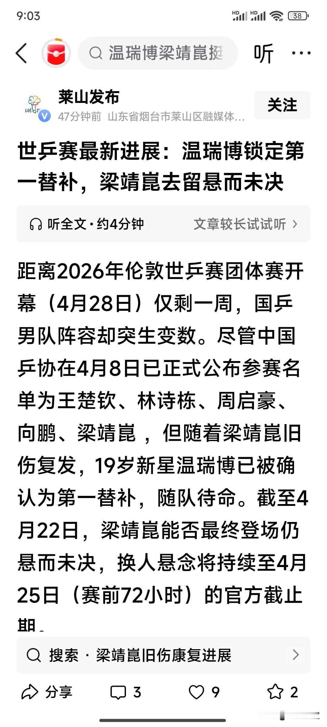 官媒确认!温瑞博成为第一顺位替补!