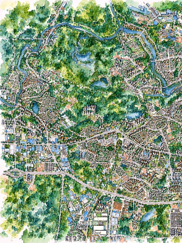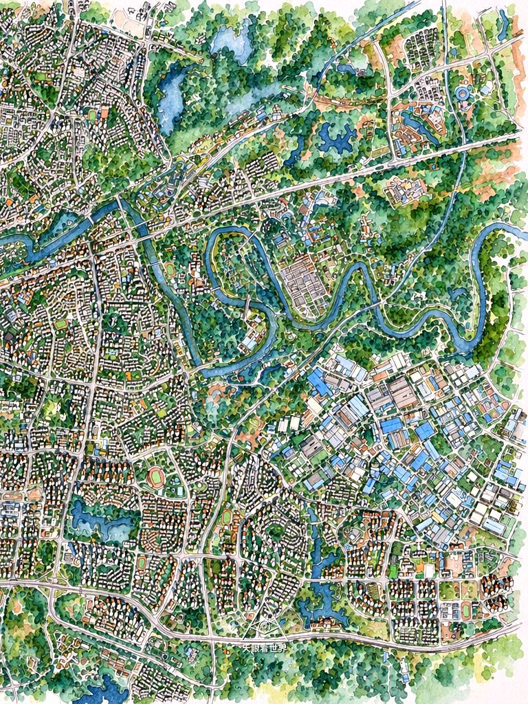 城市没有明显的“中心”,道路像树枝一样散开,没有大广场,没有超高层集群。建筑密度适中,没有那种“挤到喘不过气”的压迫感。像是按下了“慢放键”,不追求扩张,只求舒适。