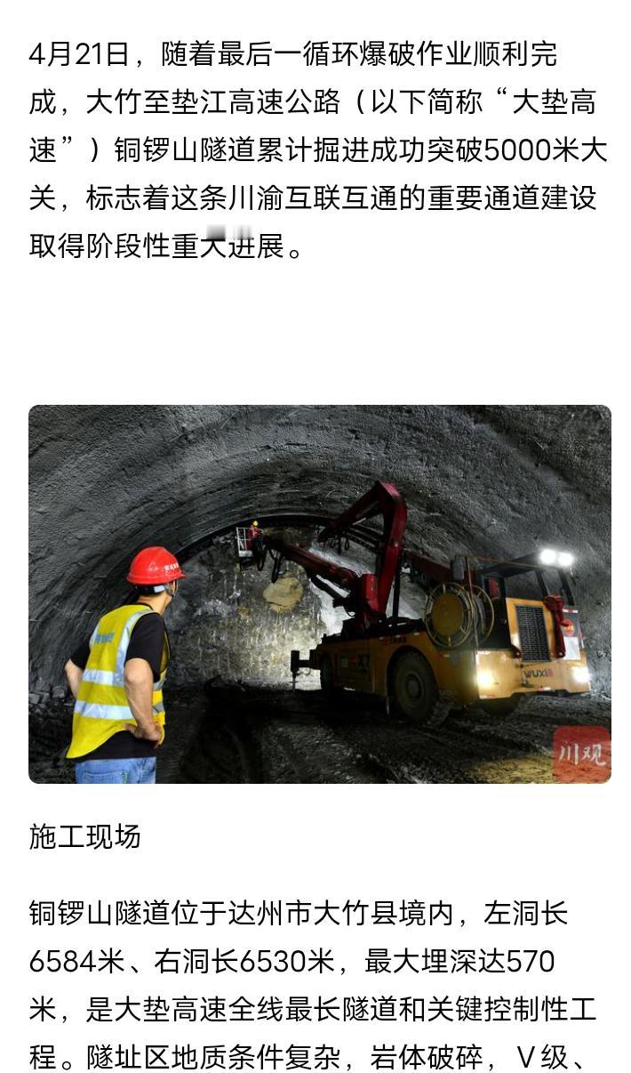 好消息,达州大竹至重庆垫江(川渝界)控制性工程全长6.5公里的铜锣湾隧道已经掘进5公里,预计2028年5月全线可以建成通车,南充至大竹段正在进行做开工前的各项准备工作,预计2026年底华蓥山特长隧道等重点桥隧工程有望先行开工,S36南大垫高速全长约112公里,起于南充高坪斑竹附近接G42沪蓉高速,止于大竹天城镇东侧的明月山隧道川渝界接正在建设的垫丰武高速,沿途主要途经蓬安银汉镇、广安花桥镇、龙台镇、渠县琅琊镇、大竹童家镇和天城镇附近,双向六车道,设计时速100公里每小时,未来南大垫高速和垫丰武高速建成通车后,南充开车来往渠县和大竹还有垫江等地将更加便捷,节假日车流量大的时候能起到为G42沪蓉高速分流作用,沿途多个乡镇交通不便的情况将不复存在。