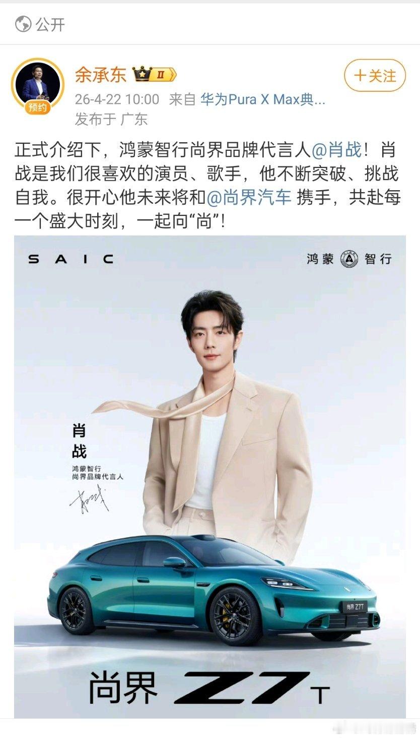 肖战代言华为汽车,直接空降最高titIe代言人,这是历史上绝无仅有的!杨幂、刘亦