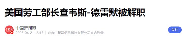 4月21日,美国白宫突然宣布了一个大消息,劳工部长洛丽·查韦斯-德雷默被解职了,她得卷铺盖走人,去私营部门找工作。