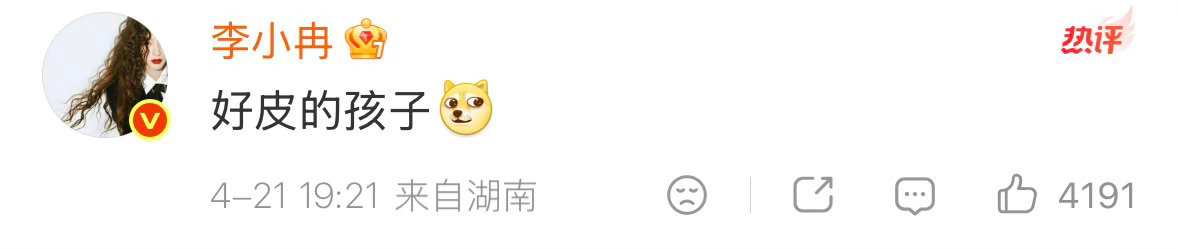 李小冉回复孙艺洲模仿心愿便利贴李小冉回复说孙艺洲是皮孩子 模仿的《心愿便利贴》后发文,李小冉评论区回复:“好皮的孩子”。