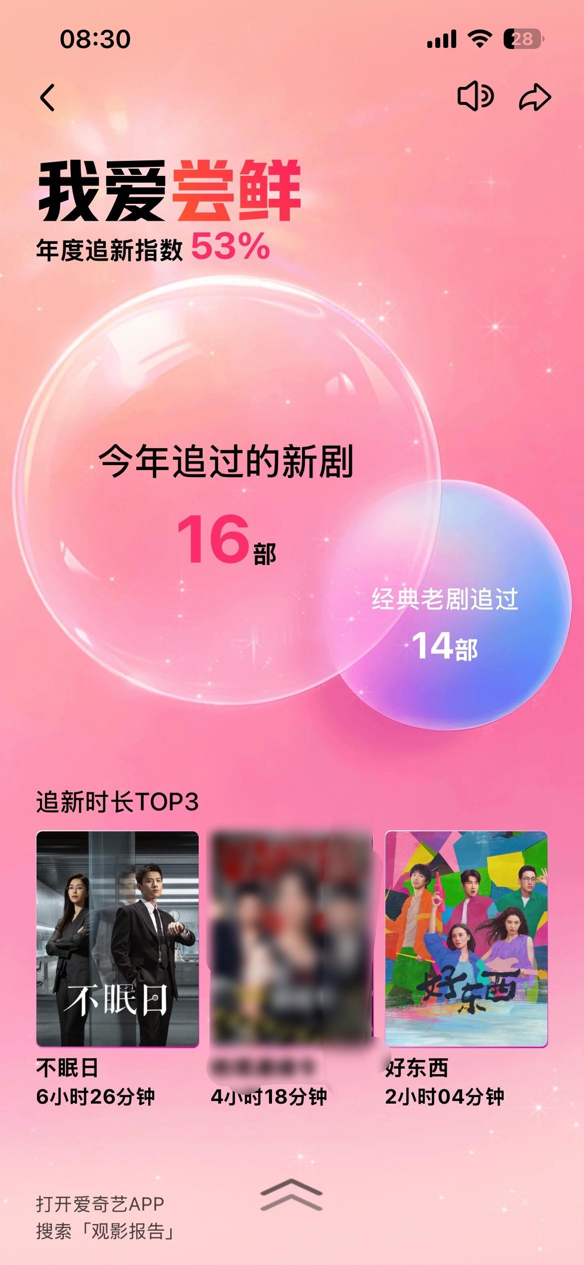 无意发现了爱奇艺也有个年度观看报告点进去看了一下去年的 好家伙给我打成白鸽了哈哈哈哈哈不过确实挺好看的 不枉我三四天一口气看完不眠日白敬亭不眠日