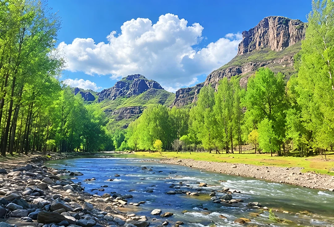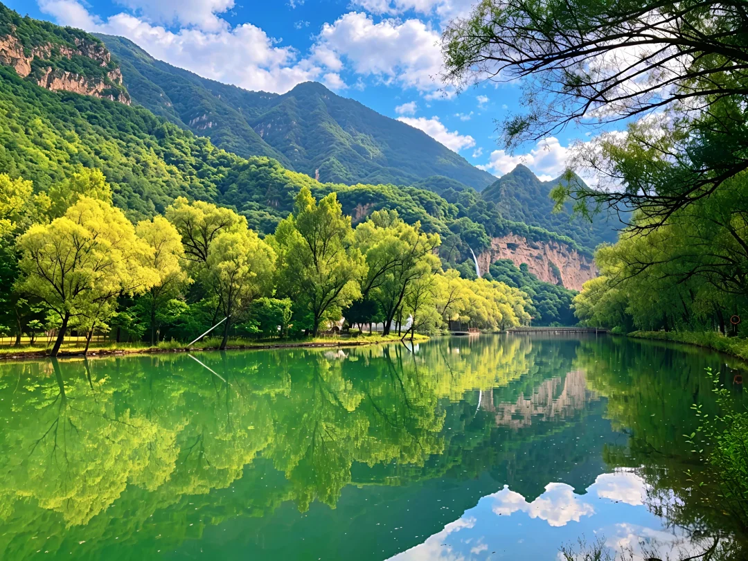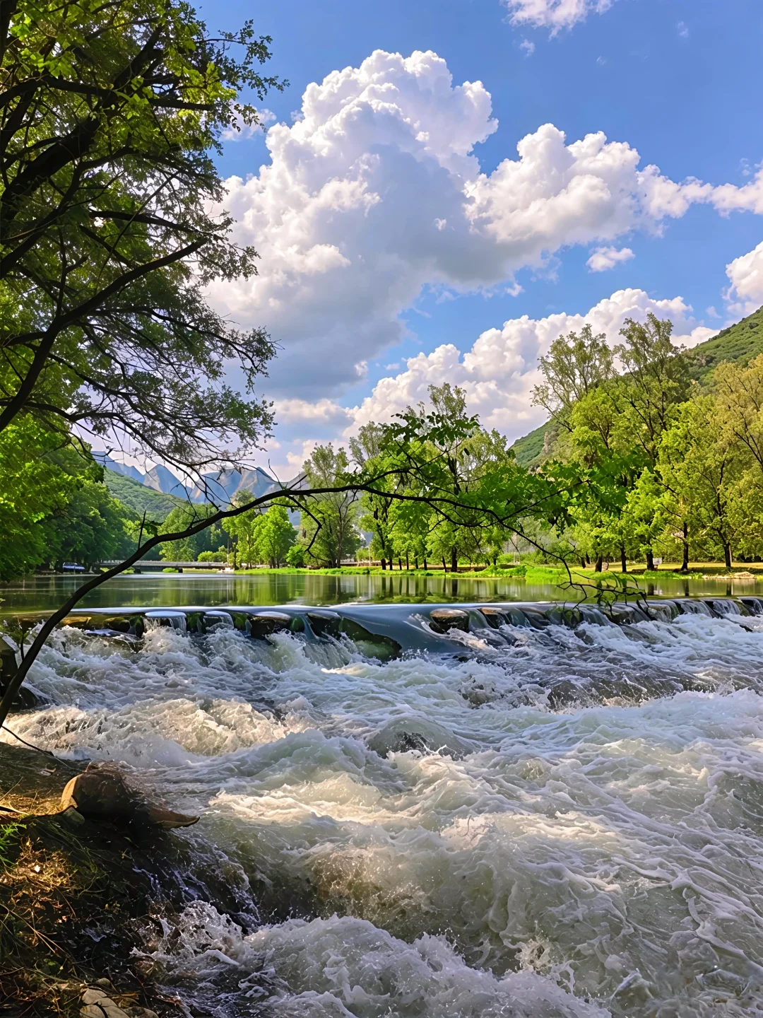 ✨强推朝阳寺花海段!栈道穿行中,随手拍都是油画感💐中途会经过好几处溪水浅滩,脱鞋踩水超爽!山倒映在碧绿的河面上,简直像把颜料盘泼进了现实~