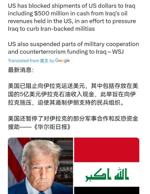 美国嘴上说,是要伊拉克遏制伊朗支持的民兵组织,可实际上,这只是借口。它真正的目的,一是控制伊拉克,不让它彻底倒向伊朗,维持自己在中东的影响力;二是通过卡住伊拉克的美元,巩固自己的美元霸权,毕竟伊拉克是产油大国,石油交易用美元结算,美国才能牢牢掌控全球石油体系。