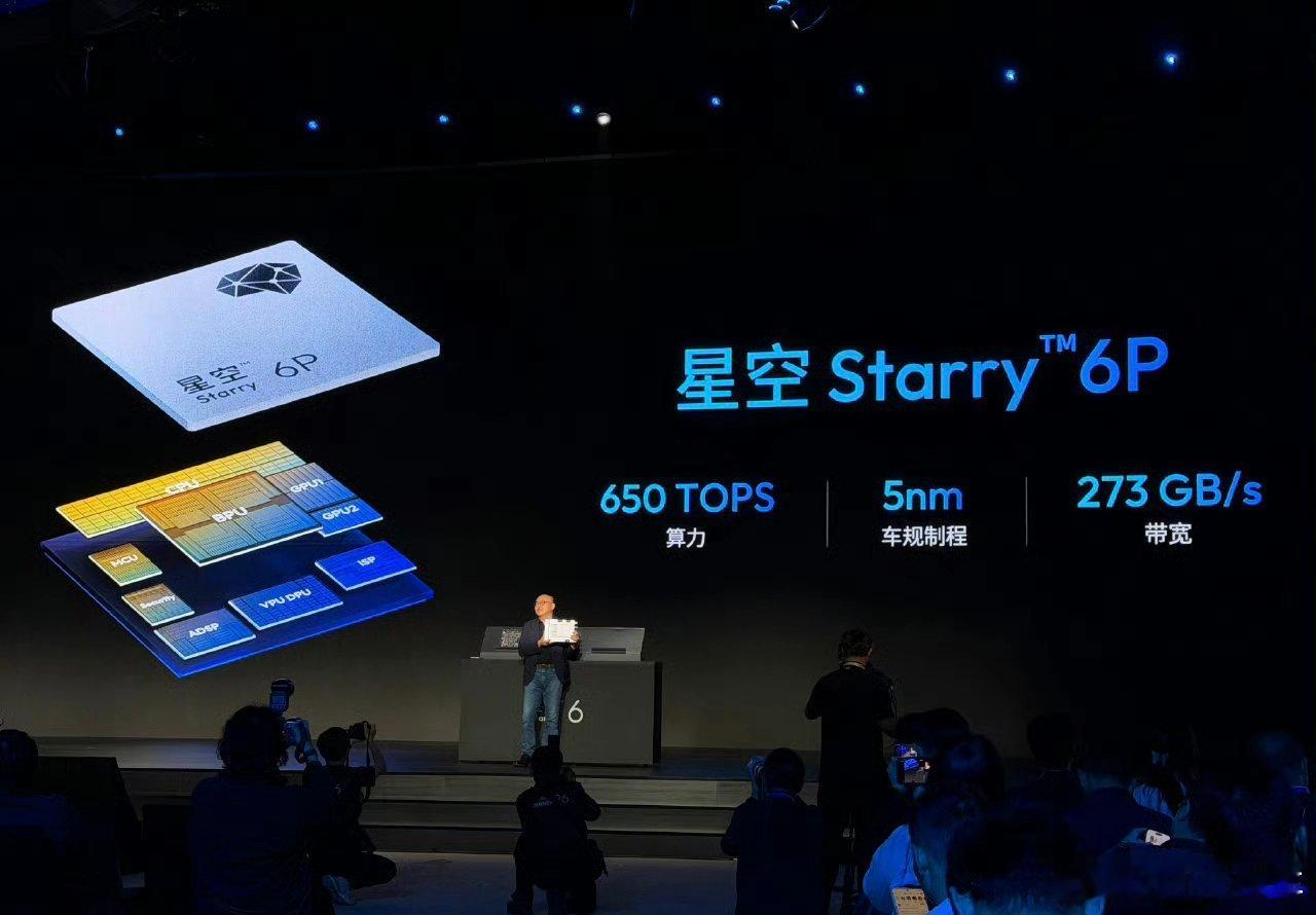 地平线星空 6 来了,基于台积电 5 nm 车规制程 20 核心 CPU,算力 500K DMIPS。4 核心 Nash BPU,650 TOPS AI 算力。 GPU 算力 3000GFLOPS。内存带宽 273 GB/s。可以支持 6-12 屏。
