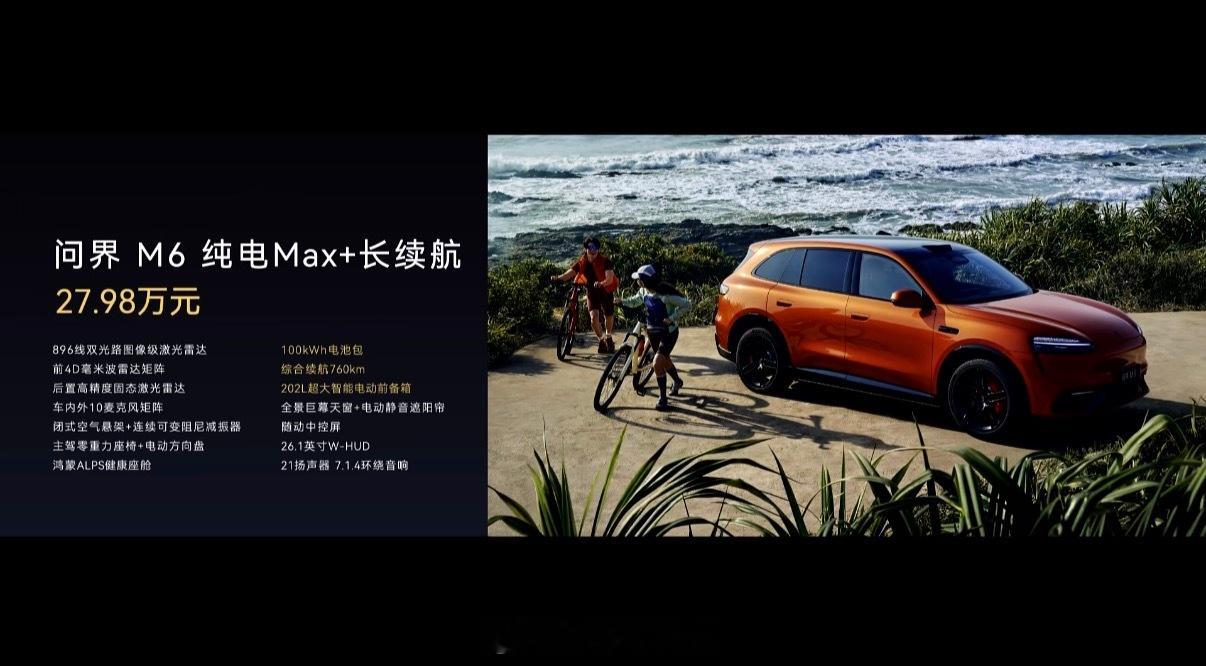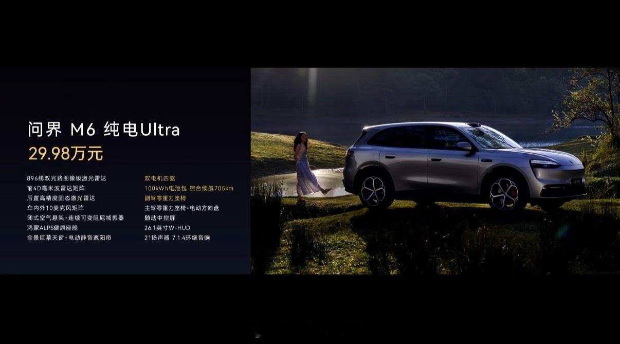 问界M6纯电Max长续航版:售价:27.98万元问界M6纯电UItra 售价:29.98万元